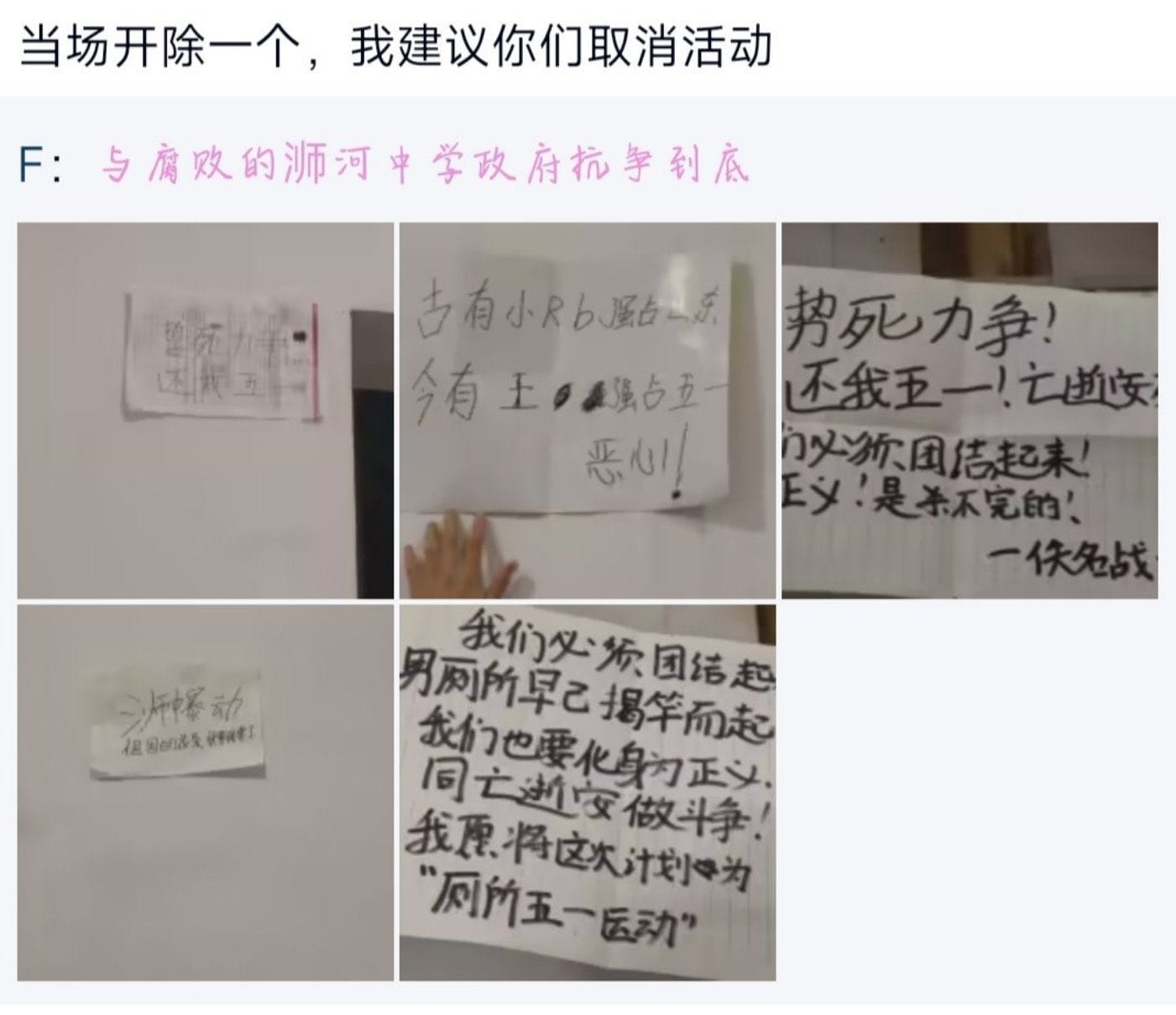 Aunque esta protesta destaca por su escala y éxito, no es un caso aislado en China. Según recuerda chuangcn.org, en 2023, estudiantes de secundaria utilizaron los baños escolares para colgar dazibao (carteles de grandes caracteres) exigiendo reinstaurar la festividad del 1 de Mayo, el Día Internacional de los Trabajadores, adoptando un lenguaje de clara inspiración marxista: “¡El baño masculino se ha levantado! ¡Seremos la justicia encarnada y lucharemos hasta la muerte! Firmado: un guerrero anónimo”. Además, en 2024, los estudiantes de Hefei Número 1 High citaron a Marx, Lenin y Mao en carteles que denunciaban la “opresión burocrática” de las autoridades escolares y pedían "resistencia frente a las normas escolares injustas".