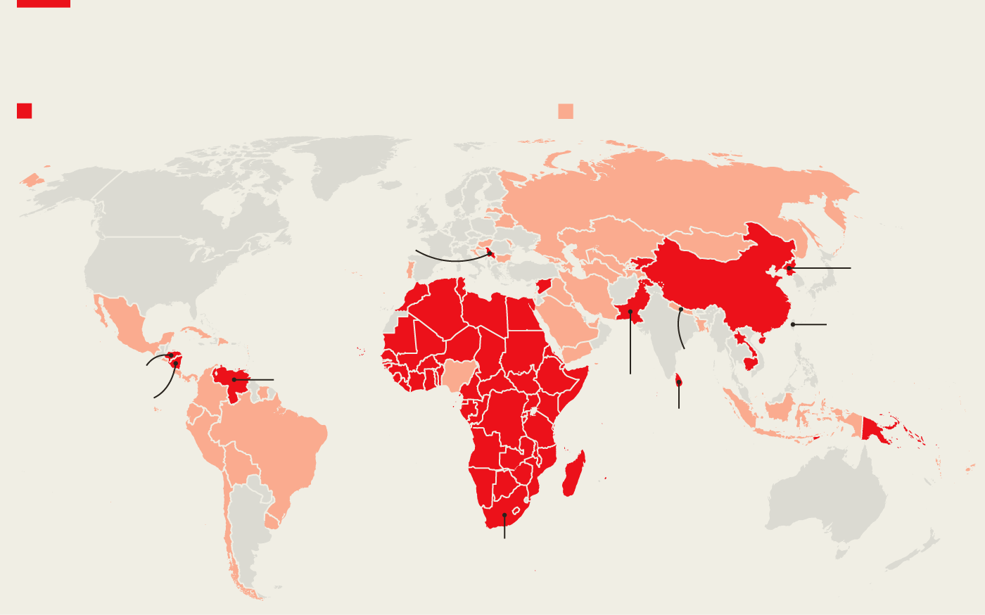 La República Popular China ha intensificado su campaña diplomática para obtener respaldo internacional sobre la soberanía de Taiwán, logrando que 70 países respalden su derecho a llevar a cabo “todos” los esfuerzos de unificación, sin especificar que sean pacíficos, según un estudio del Lowy Institute citado por The Economist. Esta batalla diplomática ha sido particularmente efectiva en el sur global, donde Pekín cosechado apoyos después de tantas inversiones e incontables acuerdos estratégicos. En septiembre, 53 países africanos firmaron una declaración conjunta en Pekín reconociendo a Taiwán como parte de la República Popular y respaldando explícitamente sus iniciativas de reunificación.