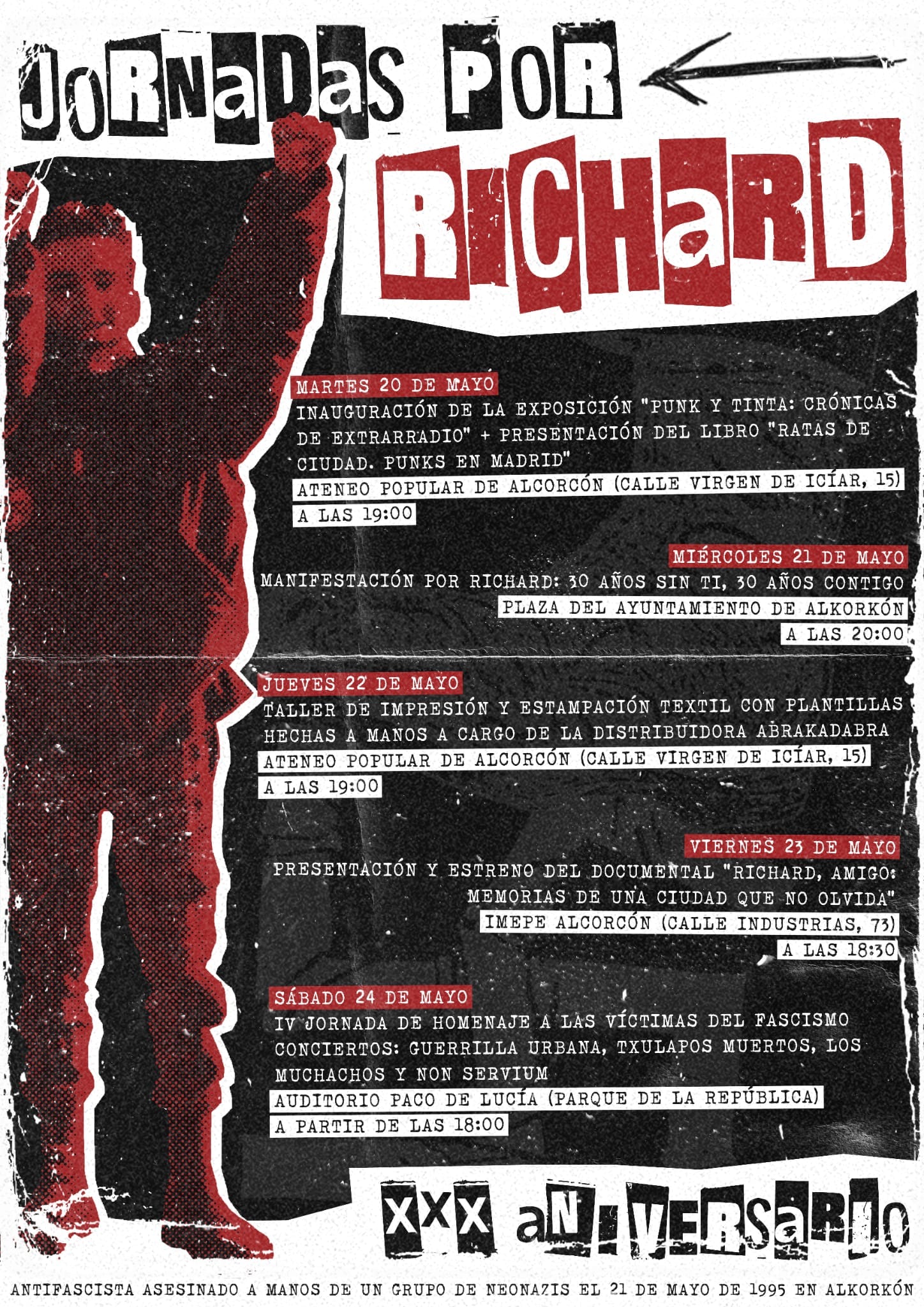 Del 20 al 24 de mayo, Alcorcón (Comunidad de Madrid) acoge unas jornadas en memoria de Richard, joven asesinado hace 30 años por un grupo de neonazis, según recogen diversos colectivos organizadores.