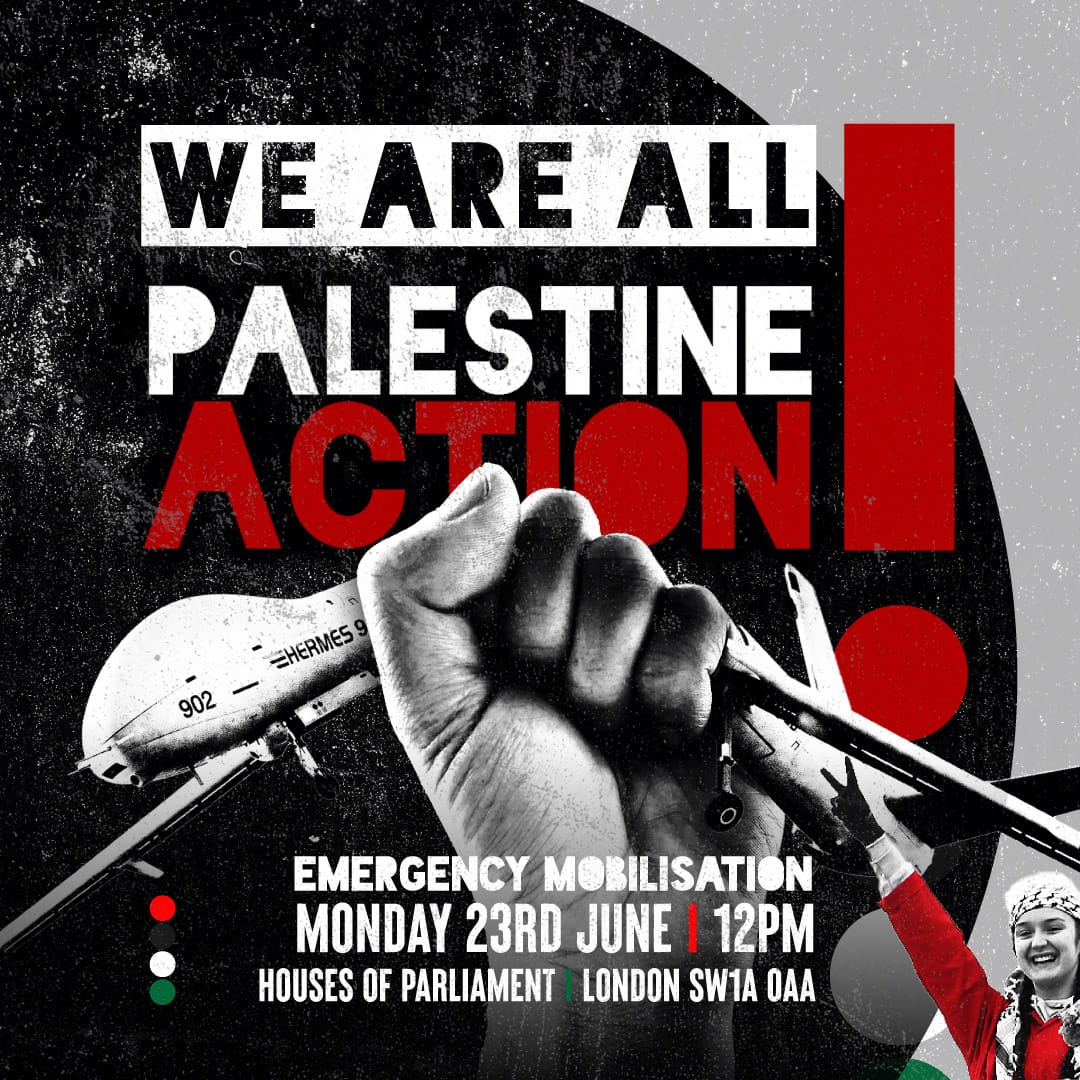 Palestine Action, fundada en el Reino Unido, ha protagonizado desde 2023 numerosas protestas y actos de sabotaje contra fábricas de armas, especialmente las del fabricante israelí Elbit Systems. Entre sus acciones más destacadas figuran el uso de una bola de demolición improvisada para romper ventanas en la sede de Elbit cerca de Bristol y el lanzamiento de pintura roja en edificios institucionales y entidades financieras, lo que ha resultado en múltiples detenciones, procesos judiciales y pérdidas para las instituciones señaladas. El grupo defiende la acción directa como forma de protesta contra la complicidad británica en el genocidio en Palestina, según sus propios comunicados y publicaciones en redes sociales.