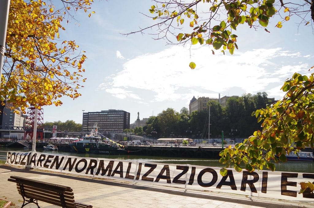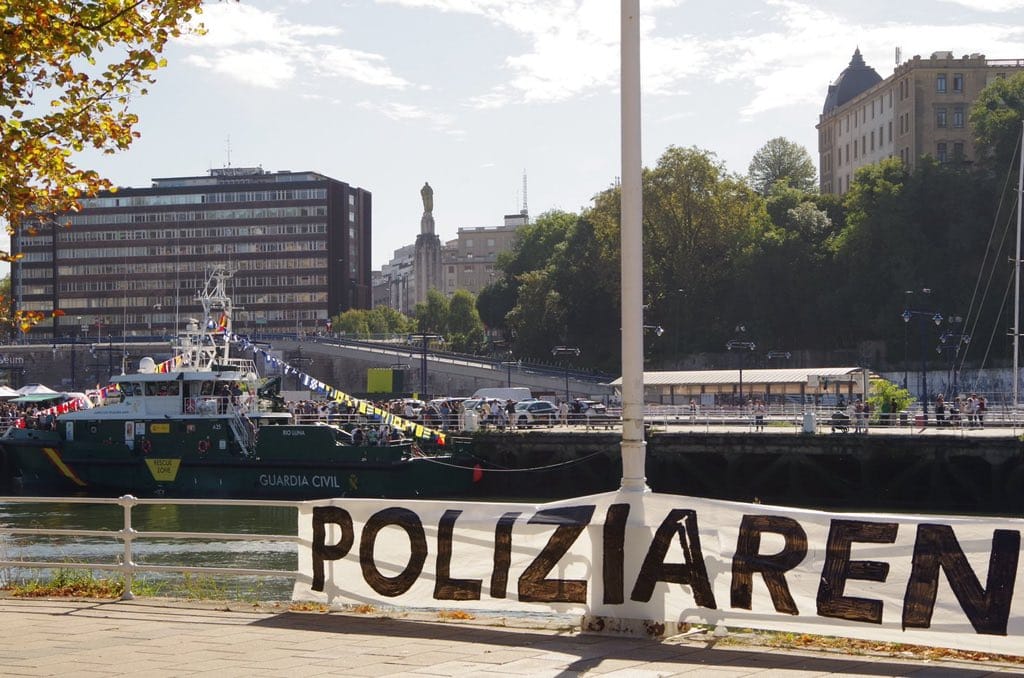 Este contraste entre la memoria antifascista y la celebración policial en una sospechosa fecha evidencia las tensiones subyacentes en la memoria y los conflictos sociales actuales. Al otro lado de la ría de Bilbao, justo en frente de la exhibición, desplegaron una pancarta que rezaba Poliziaren normalizazioari ez (No a la normalización de la policía). "Vamos a hacer frente al blanqueamiento de todas las fuerzas represivas del Estado, mientras reivindicamos la memoria de los militantes revolucionarios. Ayer y hoy, contra el fascismo!", declaraba el Consejo Socialista de Bilbo en redes sociales.
