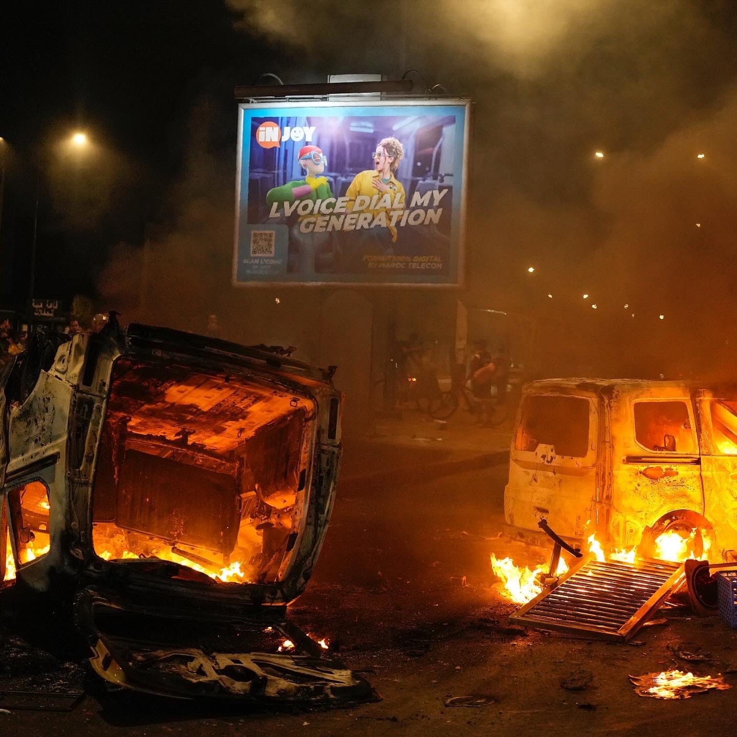 Durante la noche del miércoles, 1 de octubre, los disturbios se multiplicaron: en Salé grupos de jóvenes incendiaron bancos, vehículos policiales y comercios; en Marrakech atacaron comisarías y en el sur, regiones como Sidi Bibi y Biougra reportaron saqueos, cortes de carretera y edificios oficiales quemados. Por contraste, en Casablanca y Oujda las concentraciones permanecieron más tranquilas, con cánticos contra la corrupción, la carestía y la dimisión del primer ministro Aziz Akhannouch. En Oujda, un manifestante fue brutalmente atropellado. Vídeos difundidos en redes confirman gases lacrimógenos, munición real y atropellos.