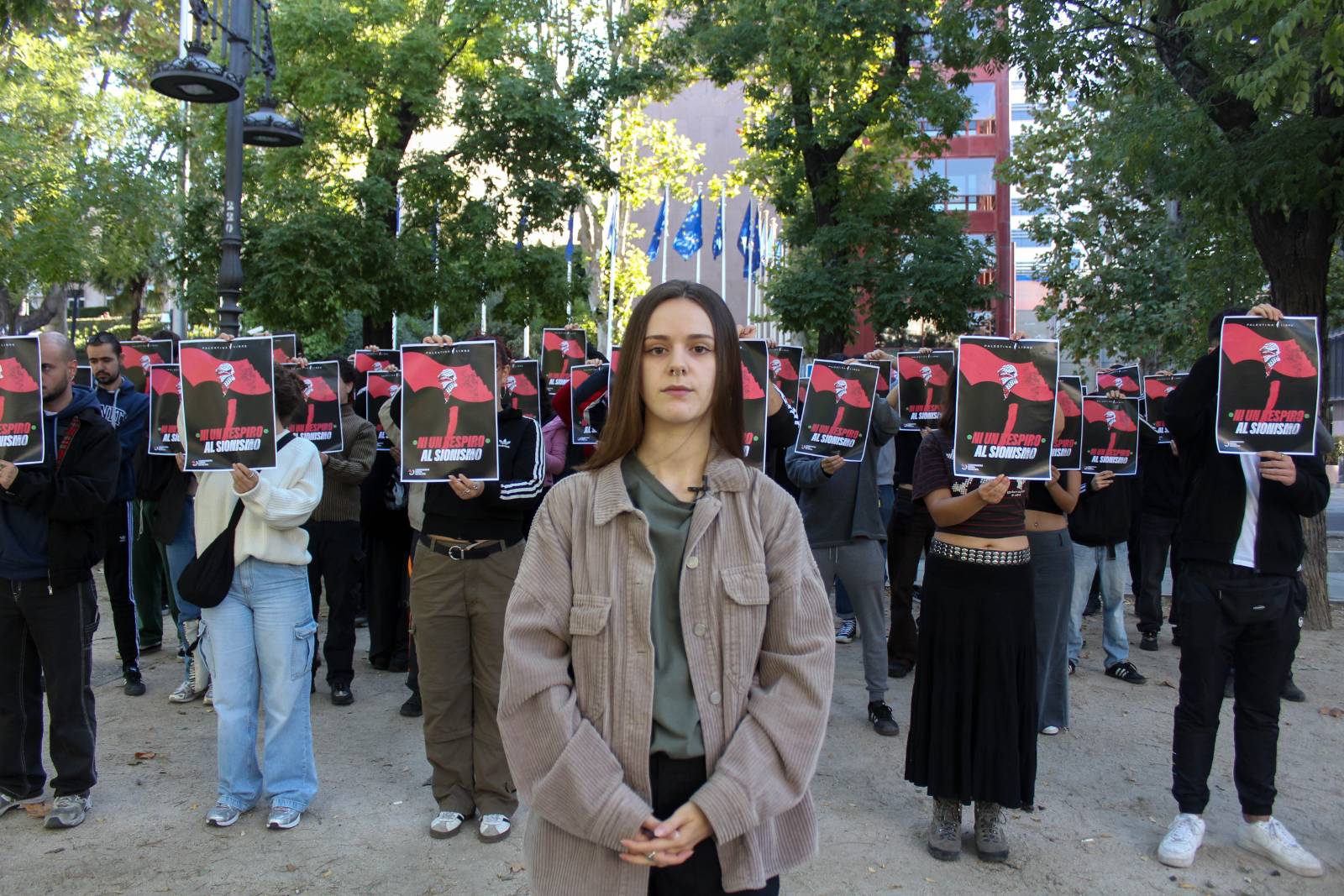 La concentración, que busca visibilizar cómo la colaboración de Airbus con la industria militar israelí produce y sostiene tecnologías que se emplean en matanzas imperialistas contra los pueblos oprimidos del mundo, mientras se reivindican las condiciones laborales de los trabajadores que venden su fuerza de trabajo para Airbus sin ningún control democrático sobre la finalidad de la producción.
