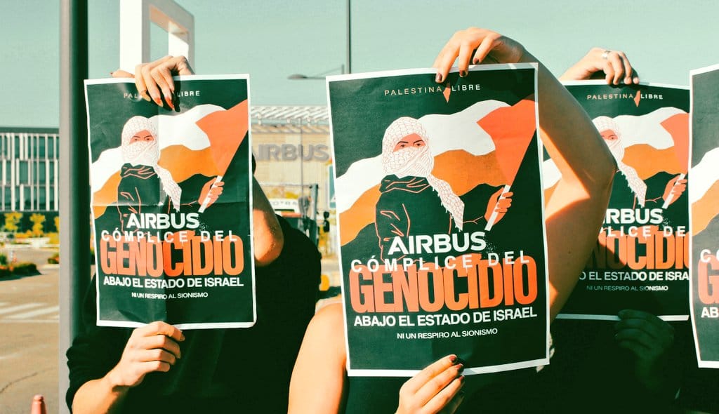 Protestan por las colaboraciones militares israelíes de Airbus, al que el Gobierno español inyecta 3.680 millones sin intereses.