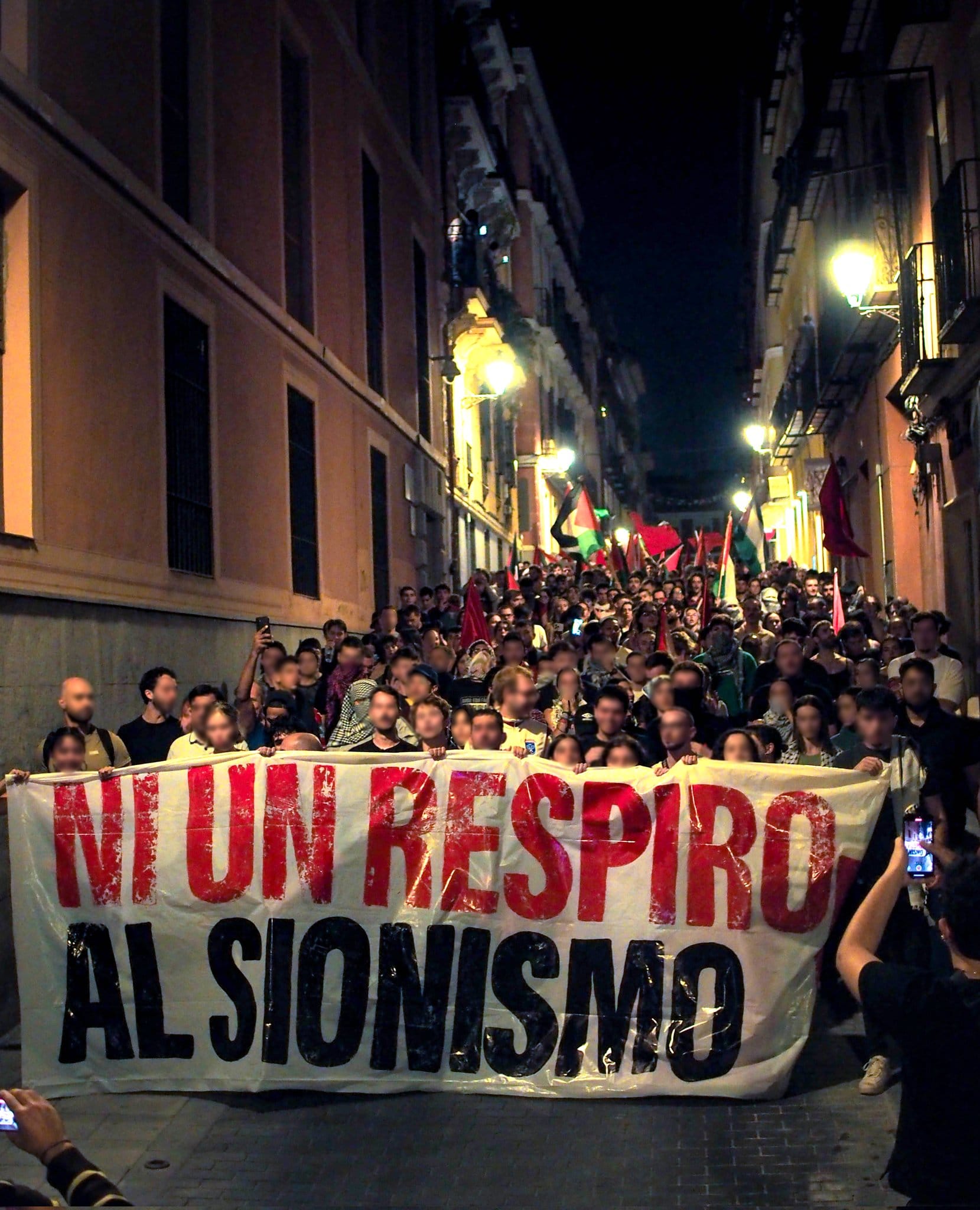 En la convocatoria, CJS sostiene que “la única solución pasa por la destrucción del Estado sionista de Israel” y llama a la juventud trabajadora a no conceder “ni un respiro a los genocidas”, en referencia a la ofensiva israelí sobre la Franja de Gaza y los colaboradores de la entidad sionista en los estados europeos.