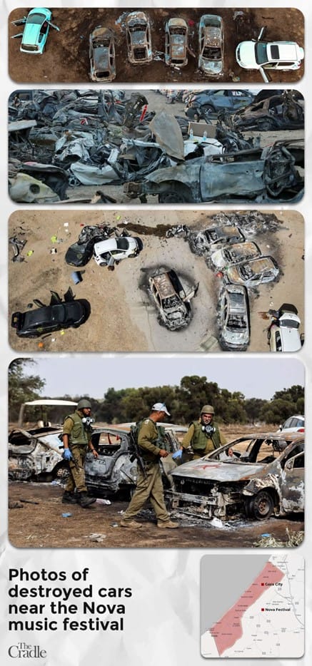 Justamente, las autoridades israelíes sostienen que Hamas fue responsable de quemar cientos de automóviles en el festival Nova, pero esta versión es cuestionada, ya que los combatientes del grupo solo portaban armas ligeras y munición limitada.