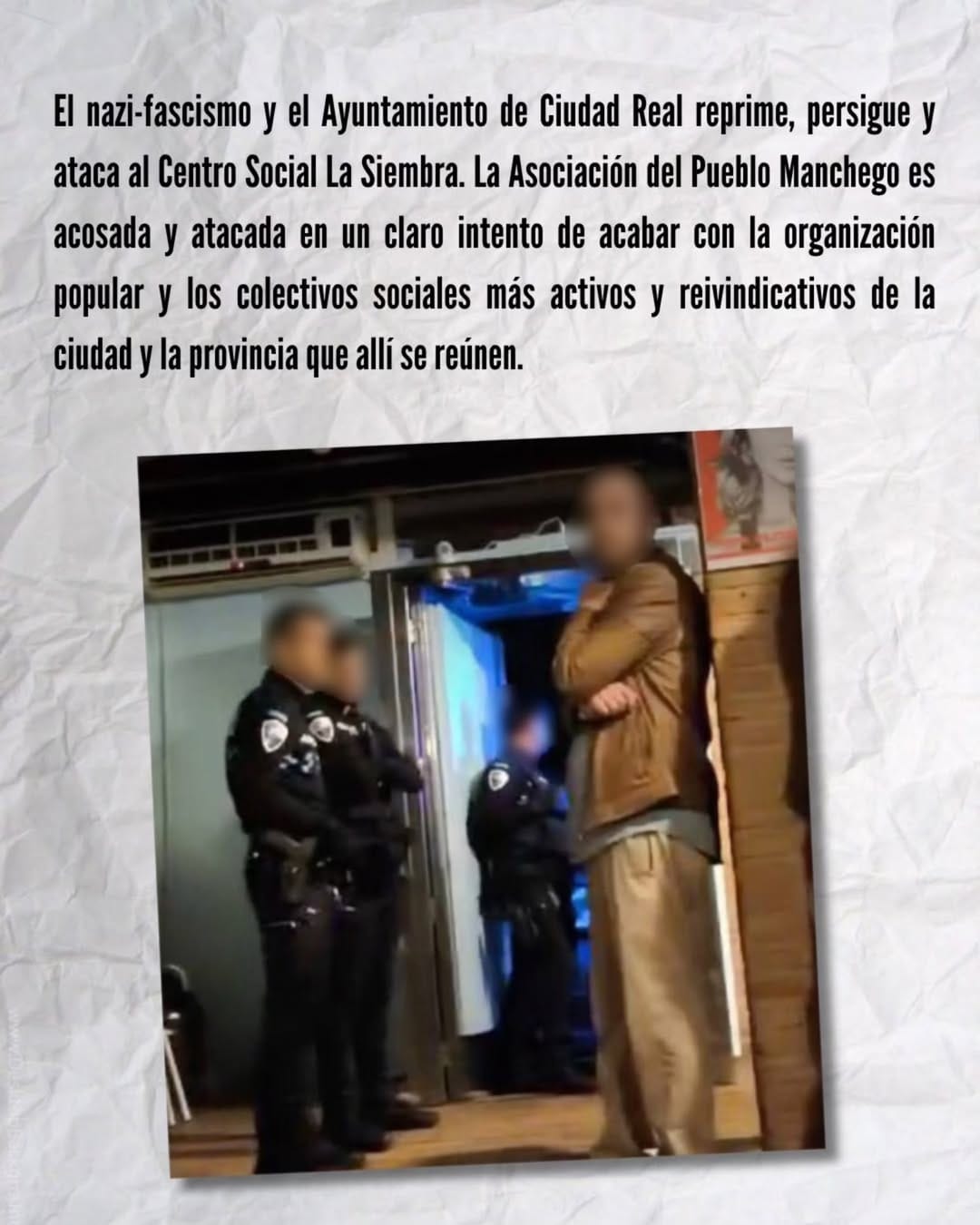 En el comunicado difundido en redes sociales, La Siembra explica que el "nazi-fascismo y el Ayuntamiento de Ciudad Real reprime, persigue y ataca" el espacio y la asociación que lo respalda, "en un claro intento de acabar con la organización popular y los colectivos sociales más activos y reivindicativos de la ciudad y la provincia que allí se reúnen". Destacan que no permitirán que ni el Ayuntamiento ni los fascistas, "a su servicio", cesen su actividad.