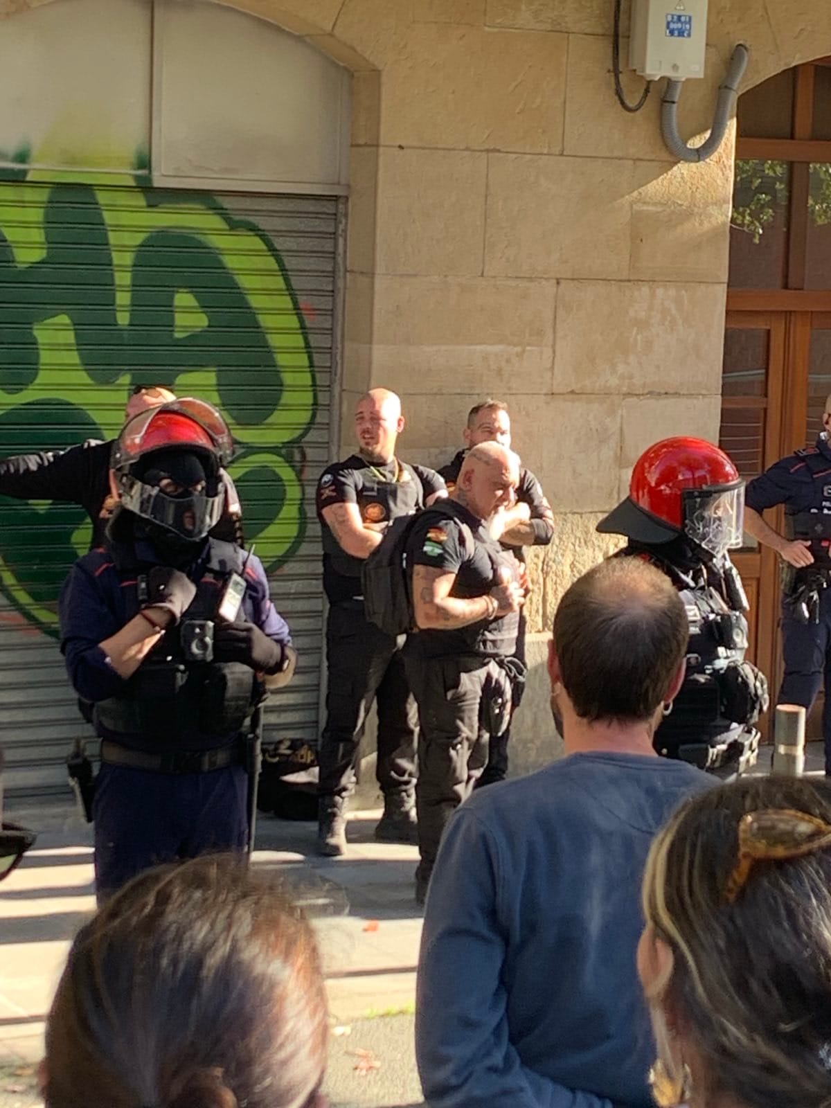 Finalmente, hacia las 16:00 horas, los matones de Horus tuvieron que abandonar el barrio. La Ertzaintza los escoltó mientras la gente movilizada contra la empresa de desocupación los despedía entre silbidos y gritos.