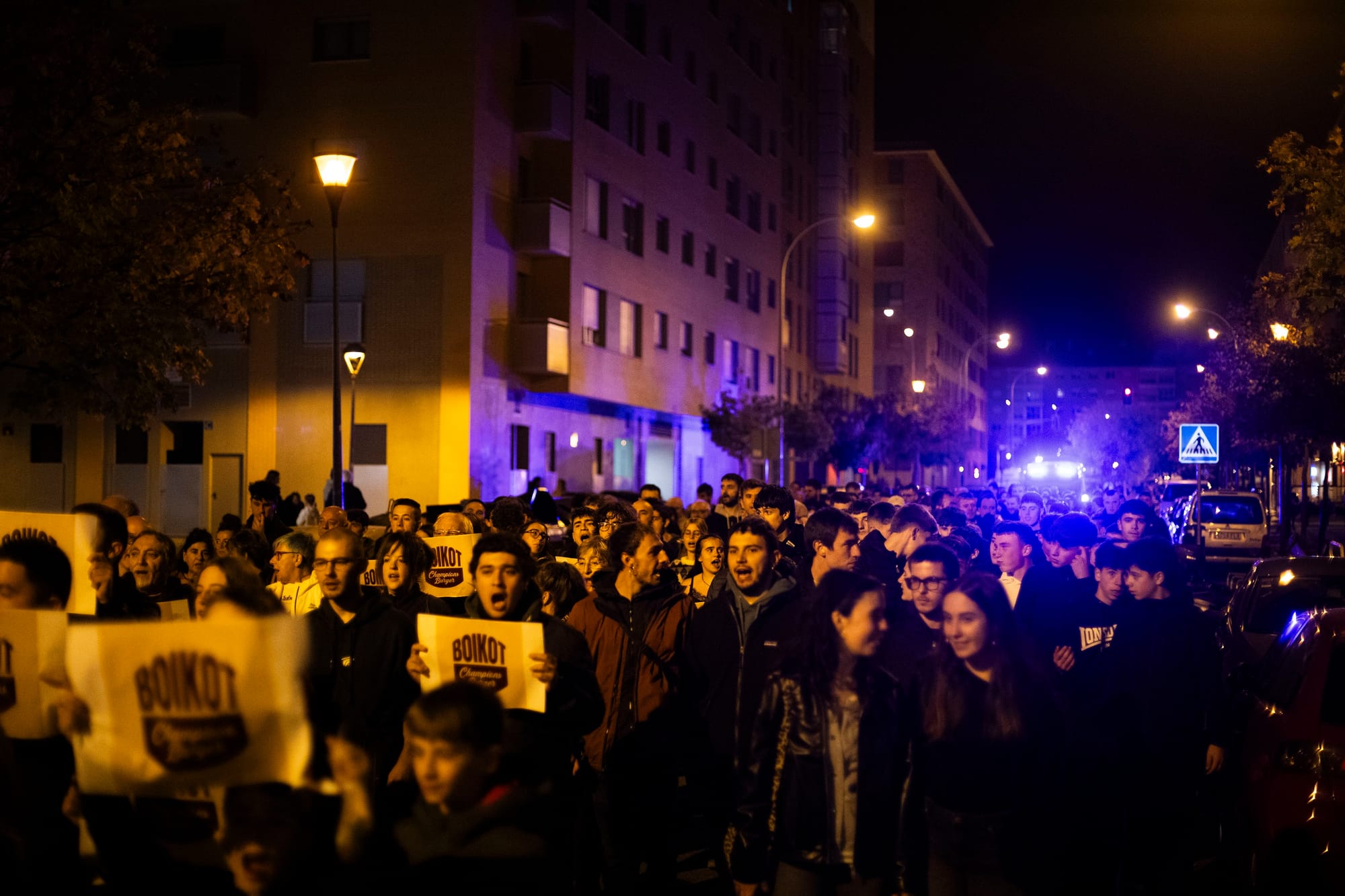 La manifestación recorrió las calles bajo el lema Boikot Champions Burger. “No queremos un modelo de ciudad orientado al negocio y al turismo, no queremos que el espacio público se ponga al servicio de los intereses privados de las grandes empresas”, explicaron. “En los últimos meses, en el parque de Runa hemos tenido las barracas de San Fermín, las motos, la feria de ganado, la vuelta ciclista y ahora las hamburguesas. Siempre sin escuchar las voces ni las quejas de los vecinos”.