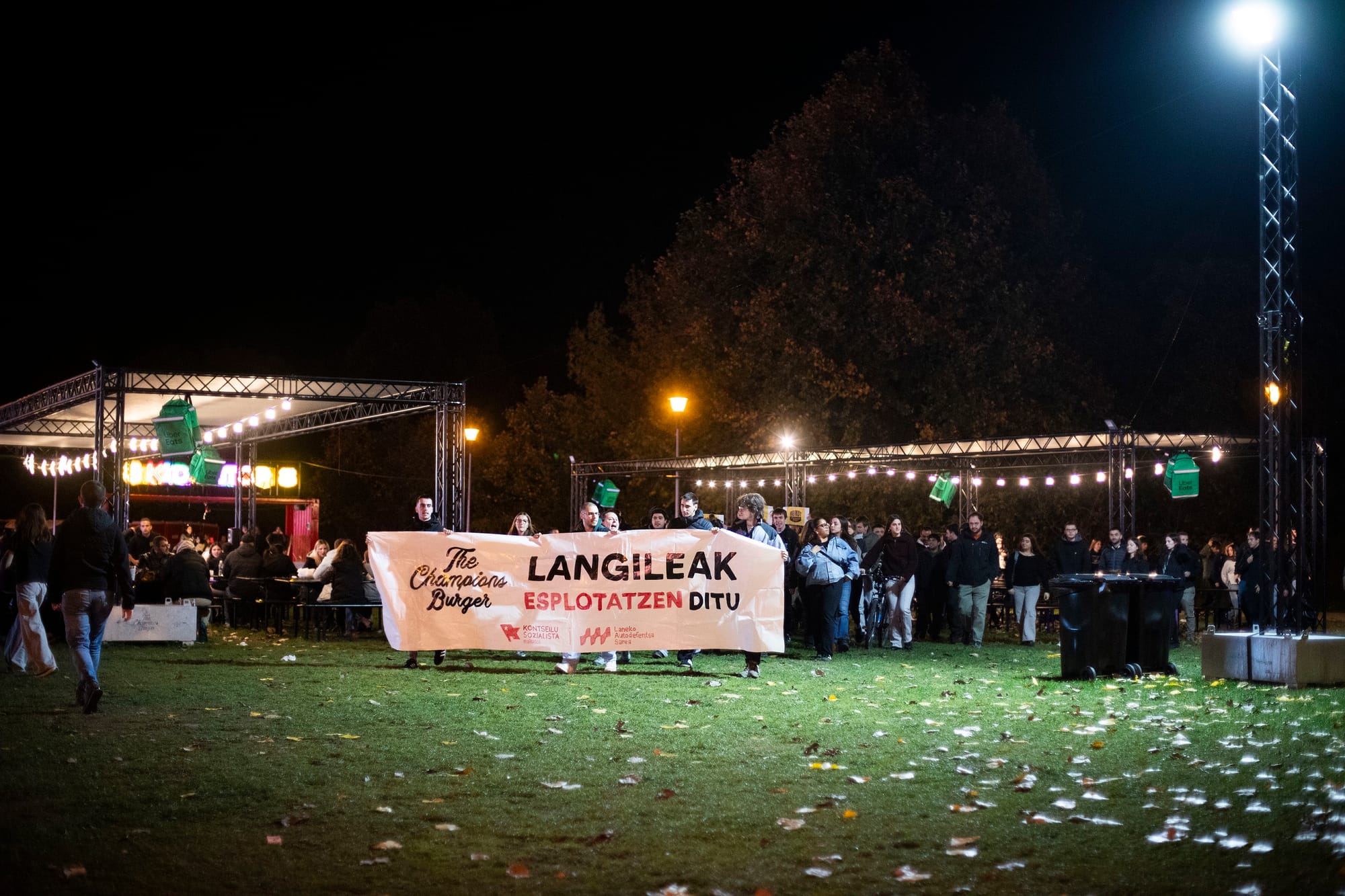 Precisamente, la LAS realizó una protesta ruidosa dentro del festival la semana pasada, portando una pancarta que decía: “The Champions Burger explota a sus trabajadores”. Durante la acción, los manifestantes lanzaron folletos por todo el recinto denunciando la situación laboral del evento.