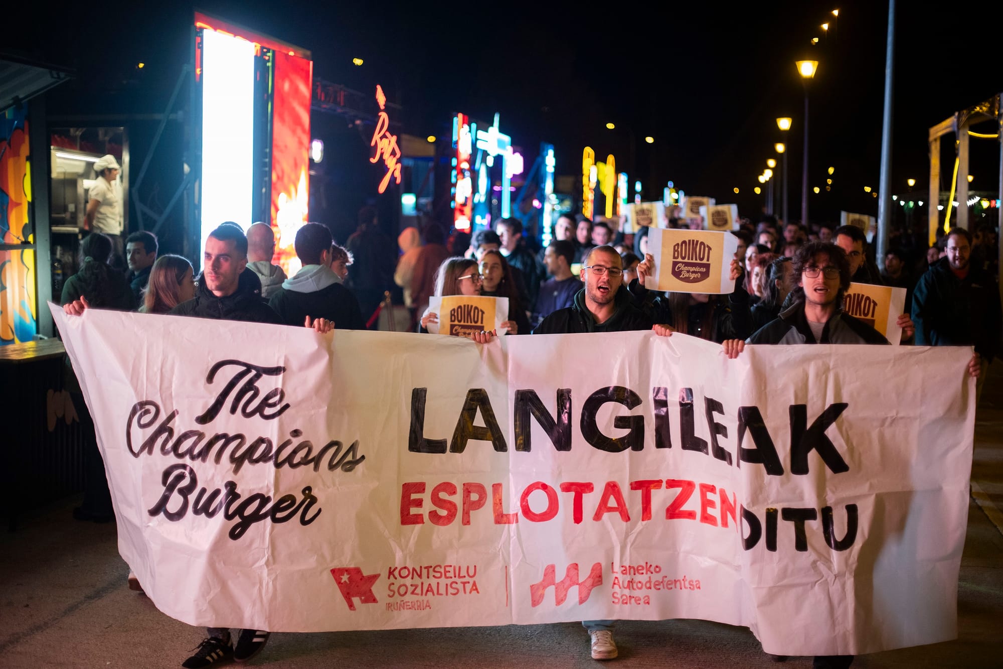 Entre el 22 de octubre y el 2 de noviembre, Iruñerria acogió nuevamente el festival itinerante The Champions Burger. Contra este macroevento, cientos de personas se han movilizado en los últimos días: el pasado 23 de octubre se celebró una multitudinaria asamblea vecinal en Rotxapea, convocada por el Consejo Socialista de Iruñerria y la Gazte Koordinadora Sozialista (GKS), y desde entonces se han organizado diversas protestas en el barrio llamando al boicot a The Champions Burger.