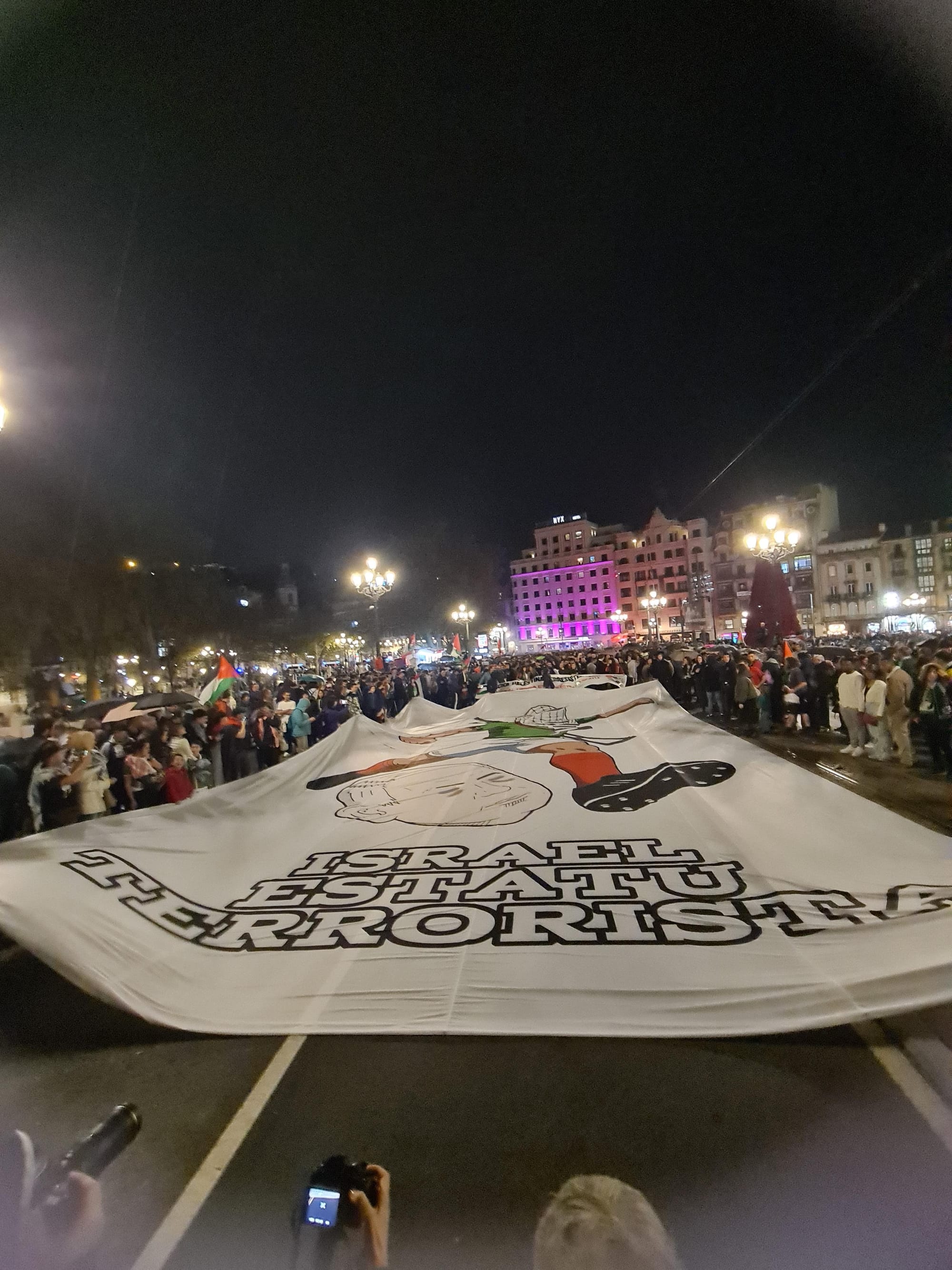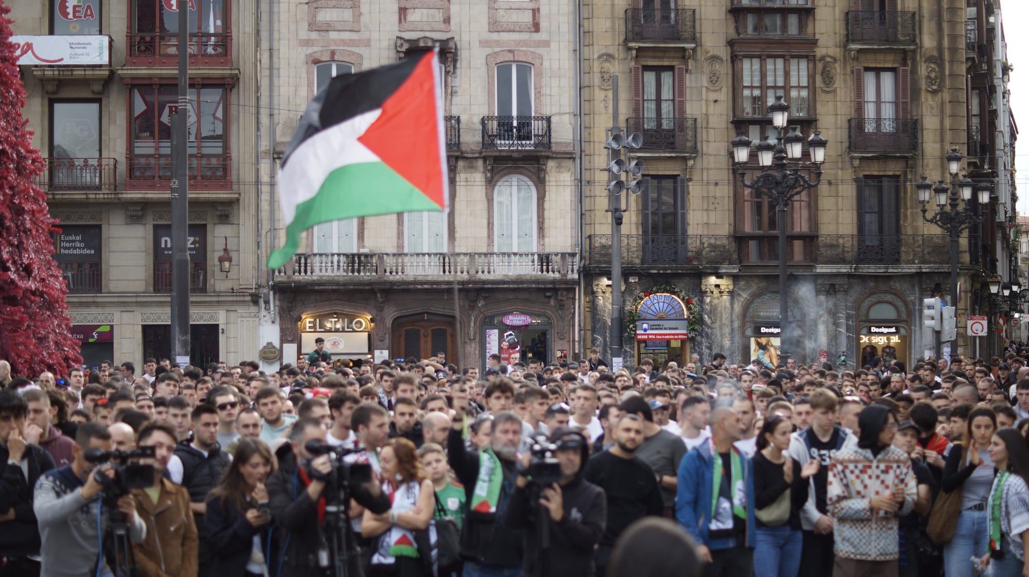 El sábado, 15 de noviembre, las reivindicaciones contra el Estado genocida de Israel y a favor de la oficialidad de la Selección Vasca tomaron Bilbo (Bizkaia). Con motivo del partido amistoso entre la Selección Vasca y la de Palestina, la jornada se convirtió en un día de reivindicación. La plataforma Palestinarekin Elkartasuna y las gradas de aficionados de Euskal Herria, entre otros, organizaron diversas iniciativas conjuntas: al mediodía en Arriaga homenajearon a los deportistas palestinos asesinados, y por la tarde realizaron un pasacalles en apoyo a la resistencia palestina.