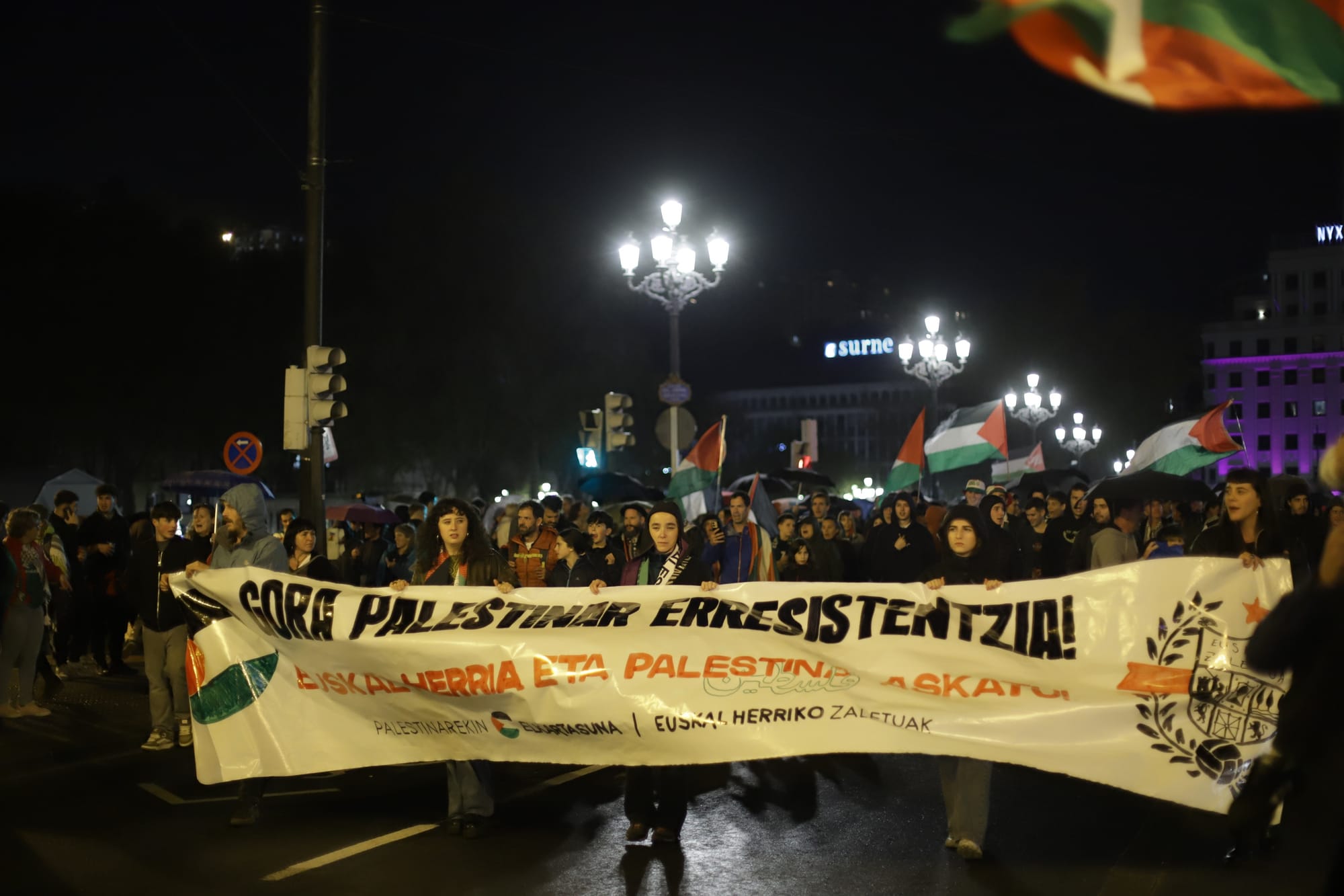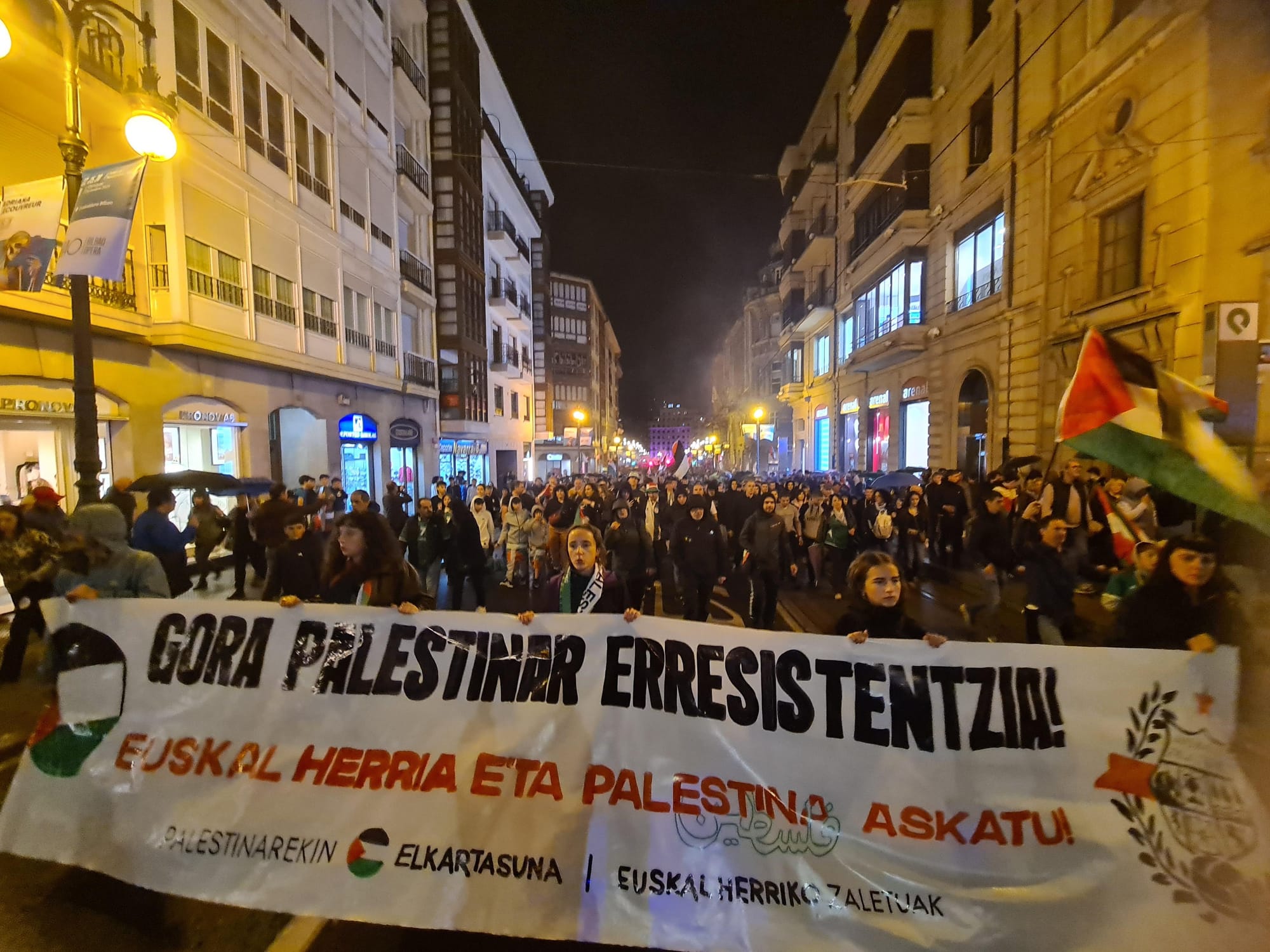 Miles de personas llenaron el sábado las calles con reivindicaciones en favor de la resistencia palestina, coincidiendo con el partido de entre Euskal Selekzioa y Palestina.