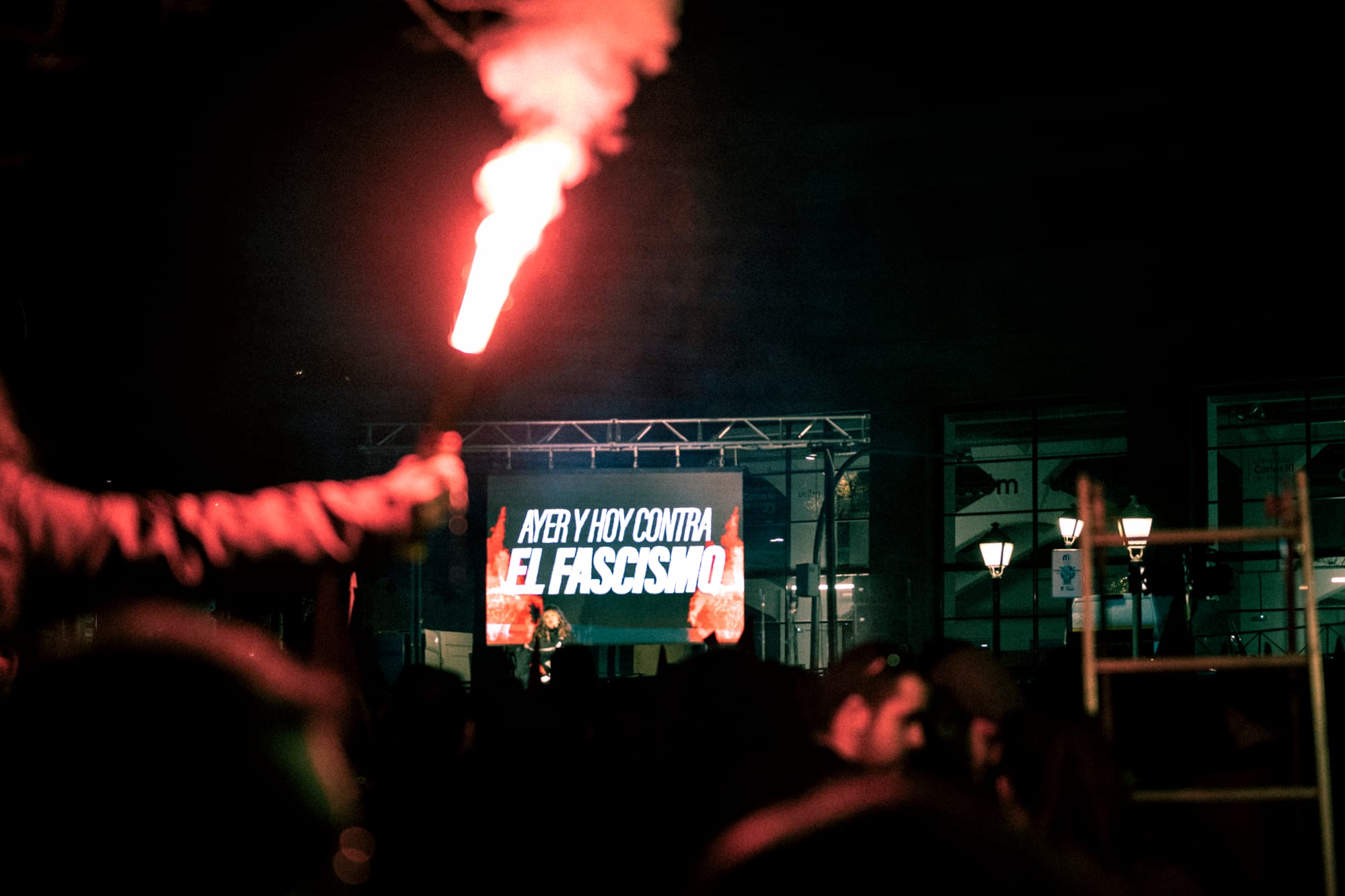 Después de abrir el acto con una interpretación de una canción de Gatta Catana, un primer portavoz de CJS tomó la palabra, recordando a quienes hicieron frente al fascismo en la Guerra Civil y en la clandestinidad: "A todos ellos les decimos: vuestra lucha no fue en vano". Recordó que Franco y su bando tenían un programa muy claro: "aplastar a la clase trabajadora y sus esperanzas de cambio. Volver a asentar el orden capitalista amenazado", y en ese sentido, reconoció que el fascismo logró "su objetivo más inmediato": "El proletariado revolucionario nunca volvió a tener, en el Estado Español, la fuerza que tuvo en los años 30. Lo llaman la pedagogía del millón de muertos". CJS recordó que las élites franquistas acordaron reformar el régimen después de 40 años de dictadura, "con el proletariado desarmado, con sus partidos dispuestos a integrarse y aceptar lo que hiciera falta, con el miedo metido en los huesos".