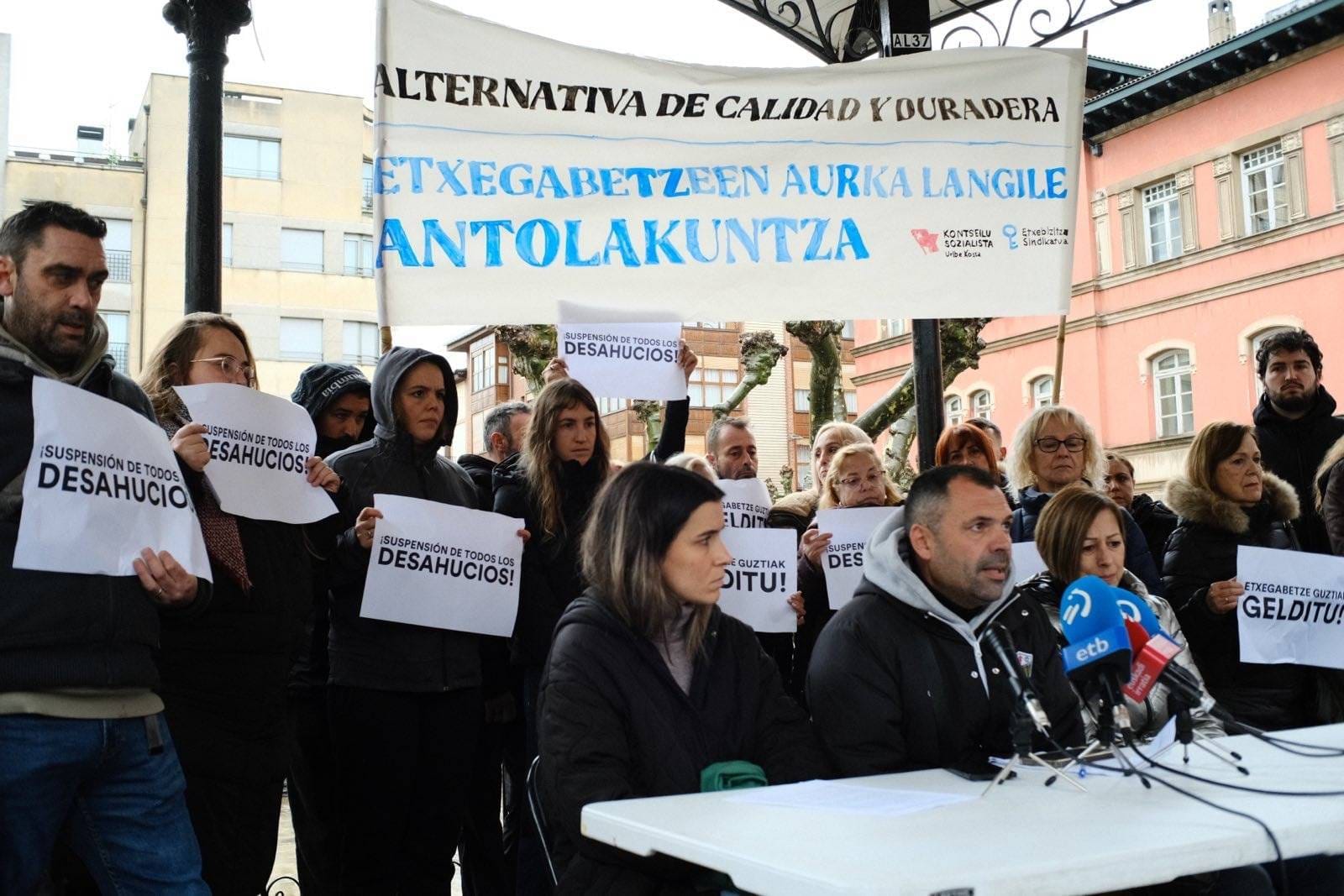 En el caso del triple desahucio de Erandio, el sindicato considera que “la verdadera solución sería que la entidad financiera devolviera las viviendas a esas tres familias”. Ha recordado, además, que los desalojos del viernes se llevaron a cabo “incluso en contra de lo que marca la ley”, sin ofrecer ninguna alternativa habitacional. “¿Vamos a permitir que las instituciones se laven las manos diciendo que han metido a las personas desahuciadas en un hotel? No, eso no es una alternativa; no es justa, ni de calidad, ni sostenible”, ha señalado.