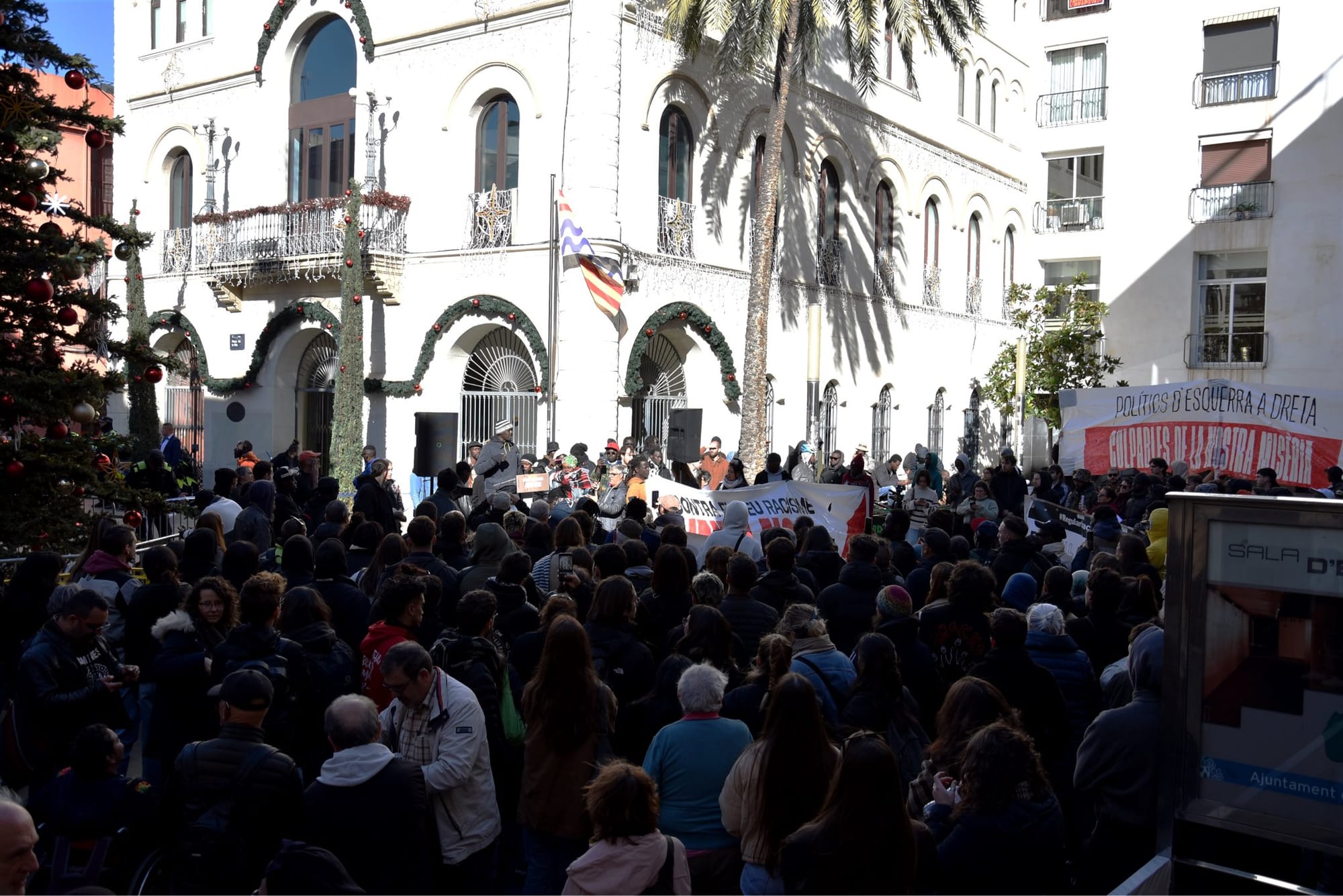 Más de 500 personas se manifestaron ante el mayor desahucio de Catalunya, señalando al Ayuntamiento del PP y al negocio de la vivienda.