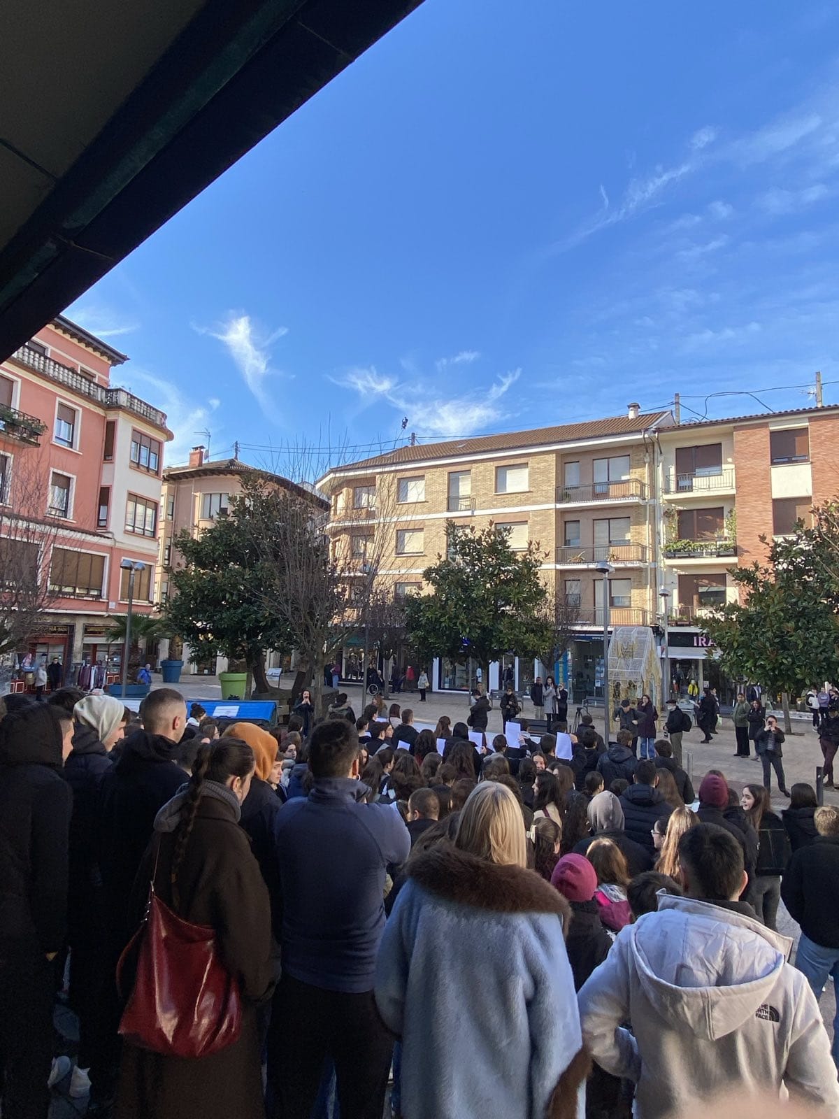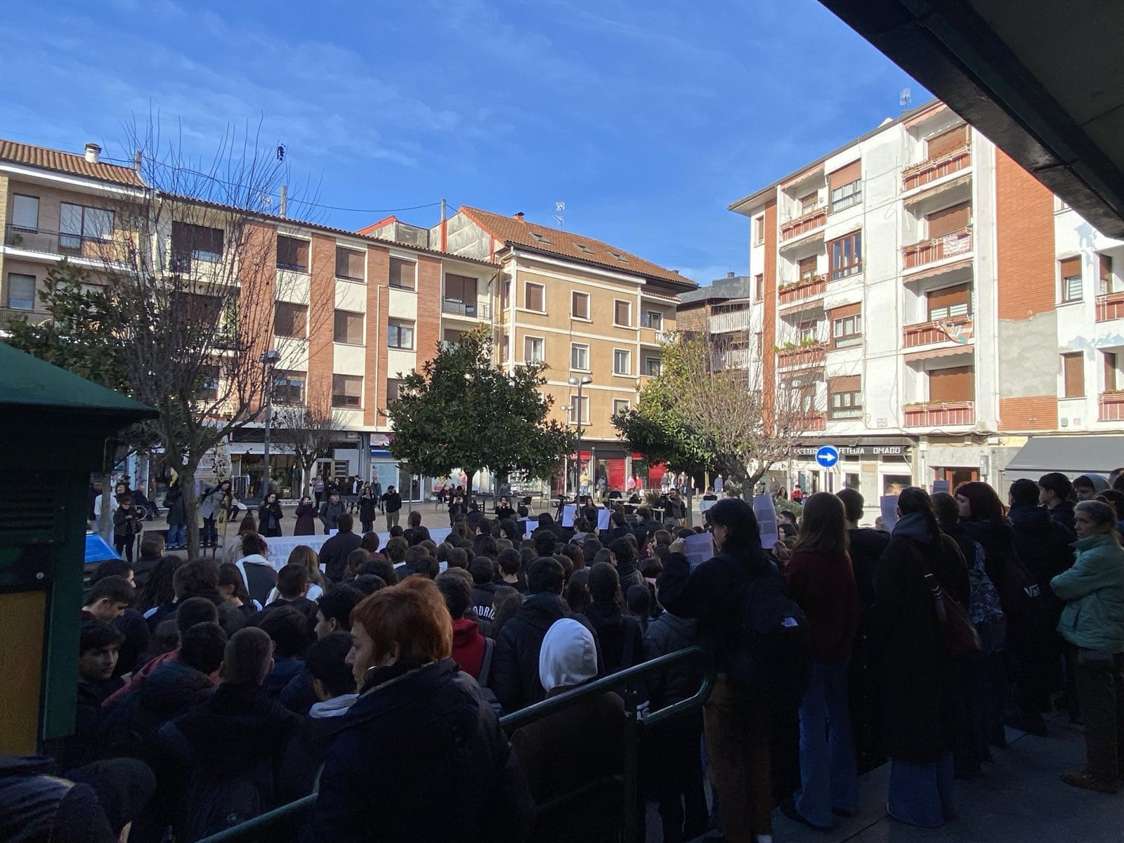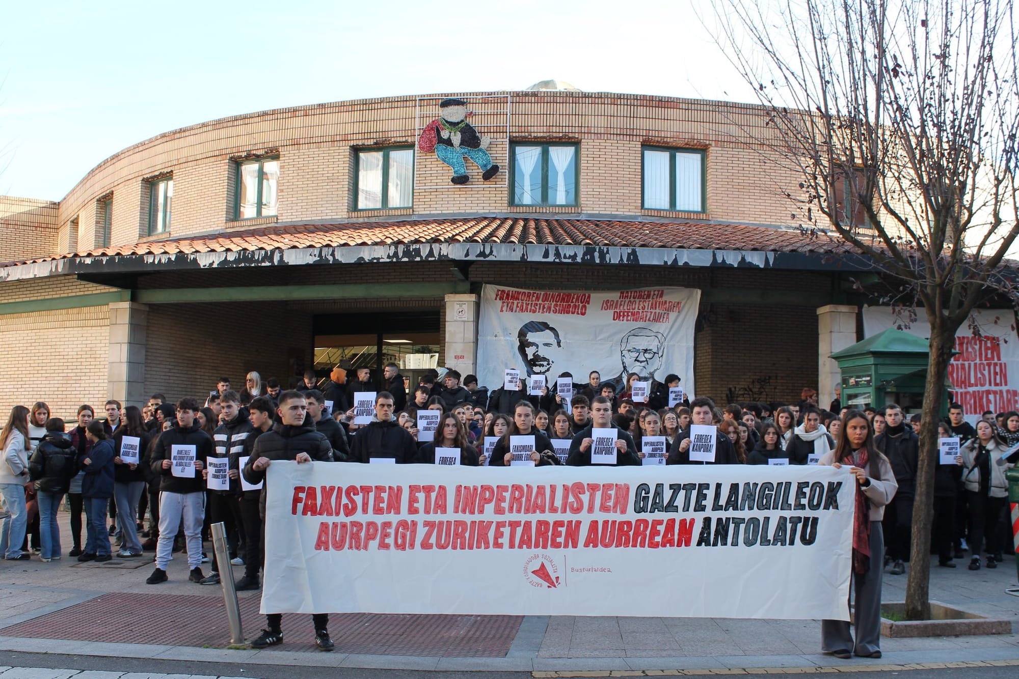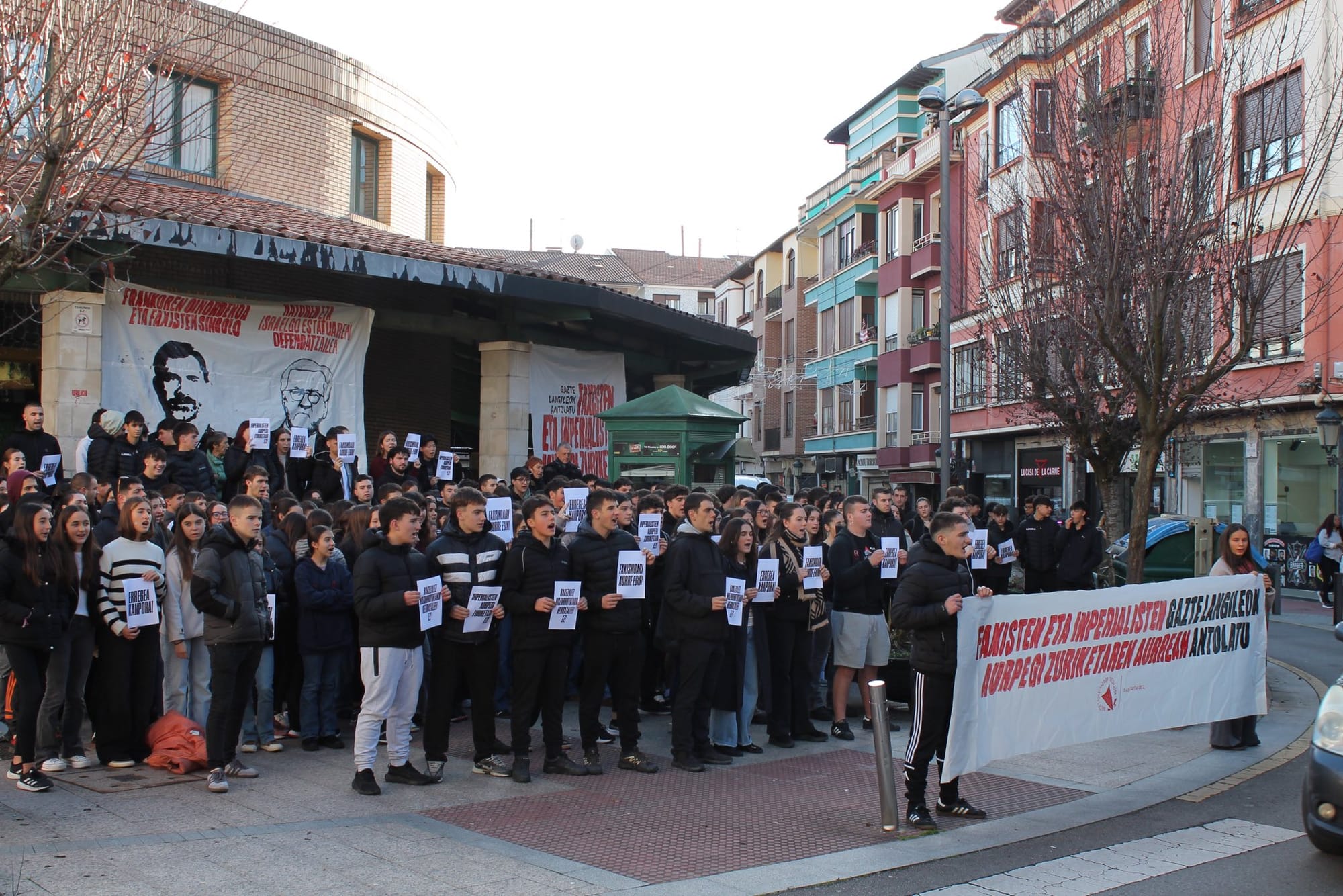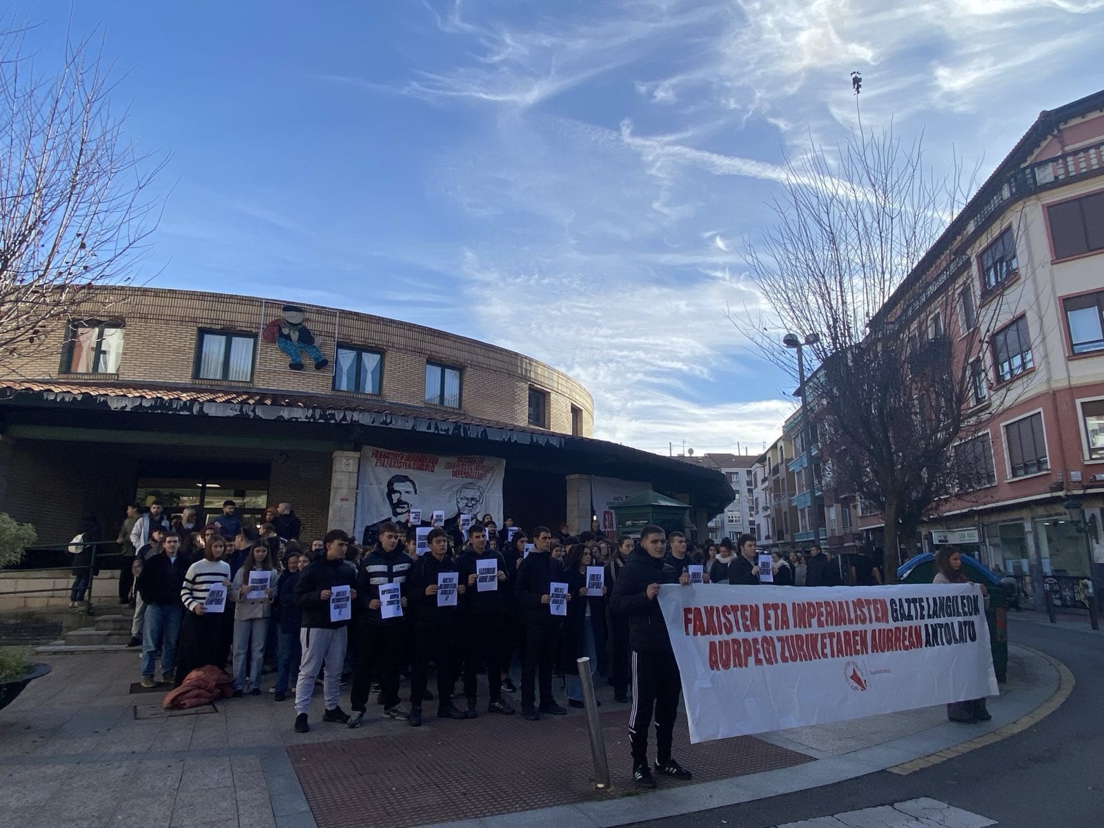 Numerosos jóvenes de la localidad han acudido a la protesta convocada por GKS a partir de las 11:00 en la Plaza del Mercado. Así rezaba la pancarta que llevaban en la movilización: Ante el blanqueo de cara de fascistas e imperialistas, organizar a la juventud trabajadora.