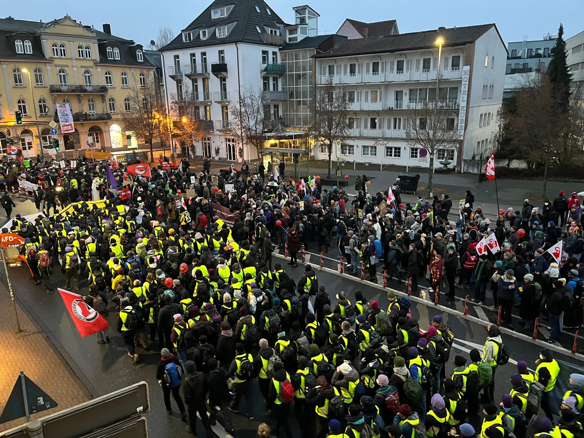 Las protestas antifascistas en Gießen continúan intensificándose a lo largo de la mañana, y la policía desbloquea los pasos mediante la violencia. Aún así, el congreso de los fascistas, previsto inicialmente para las 10:00, sigue condicionado por los bloqueos y enfrentamientos. A partir de las 10:30, las autoridades y la propia AfD informaban que el salón de actos en Hessenhallen aún no se había llenado ni con el 25% de los 1.000 delegados esperados, mientras la Policía seguía escoltando los convoys de hasta 13 autobuses de AfD desde áreas como el Parkplatz Pfaffenpfad, bajo fuerte protección de las 6.000 agentes.
