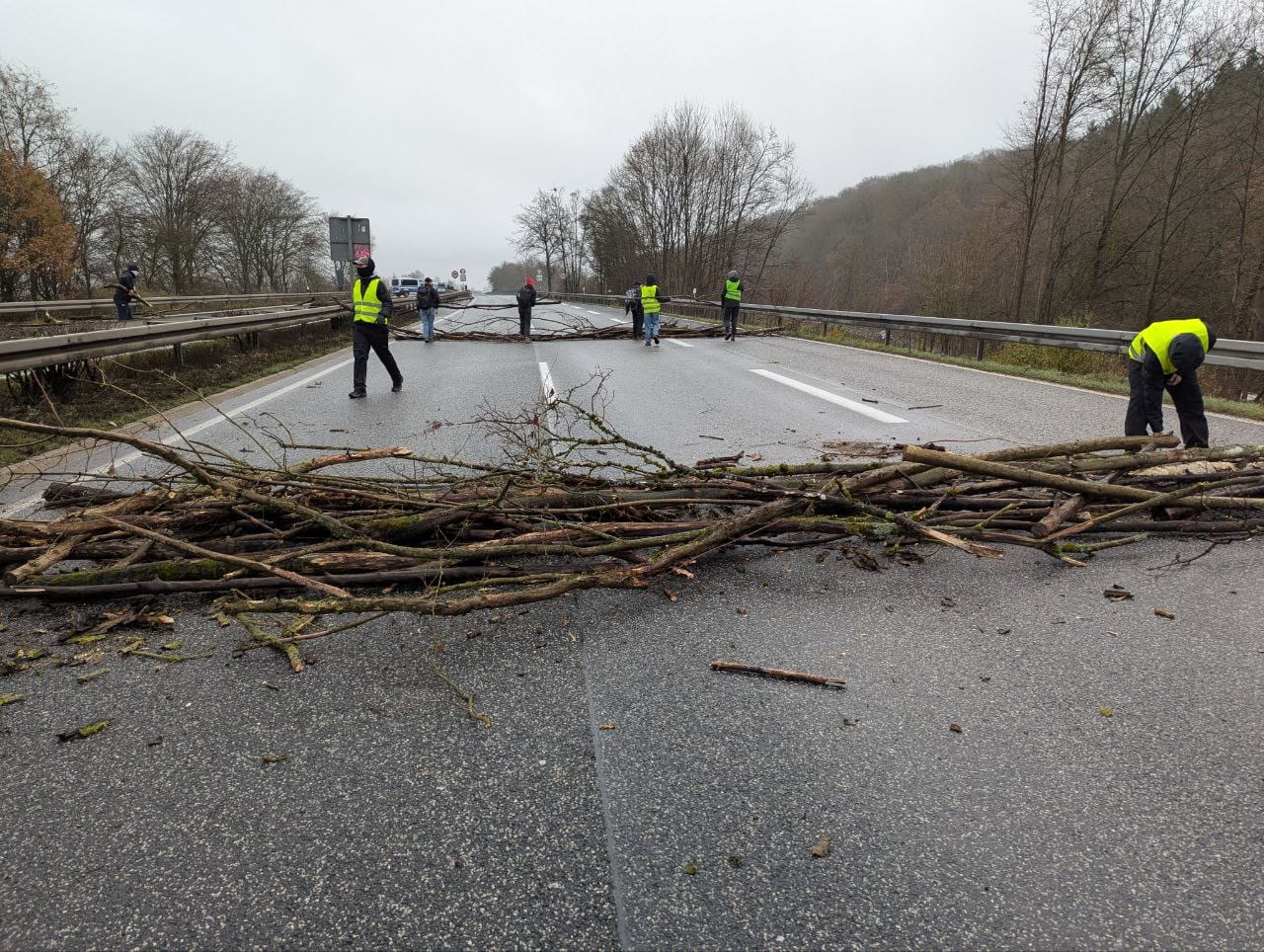 Eine Gruppe des Bündnisses „Widersetzen“ stößt auf der B429 im Südwesten von #Gießen auf die Polizei. Nach mehrfacher Warnung drängen Beamte mehr als 100 Aktivisten hinter die Leitplanke zurück – ein minutenlanges Gerangel, schließlich auch unter Einsatz eines Wasserwerfers. pic.twitter.com/JjlGiiXk8Y