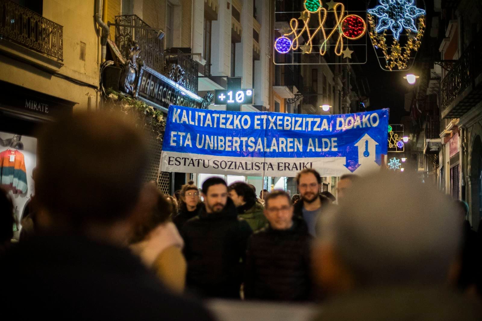 Centenares de personas se manifestaron el sábado en las calles del Casco Antiguo de Iruñea (Nafarroa) bajo el lema “¡No al negocio turístico! Solidaridad con Mercaderes 18”, en una movilización convocada por el Sindicato Socialista de Vivienda de Iruñerria y respaldada por una docena de colectivos sociales. La protesta denunció con contundencia la turistificación del barrio, que expulsa a la clase trabajadora de sus hogares para convertir viviendas habituales en apartamentos turísticos, priorizando los beneficios privados sobre el derecho a una vivienda digna.
