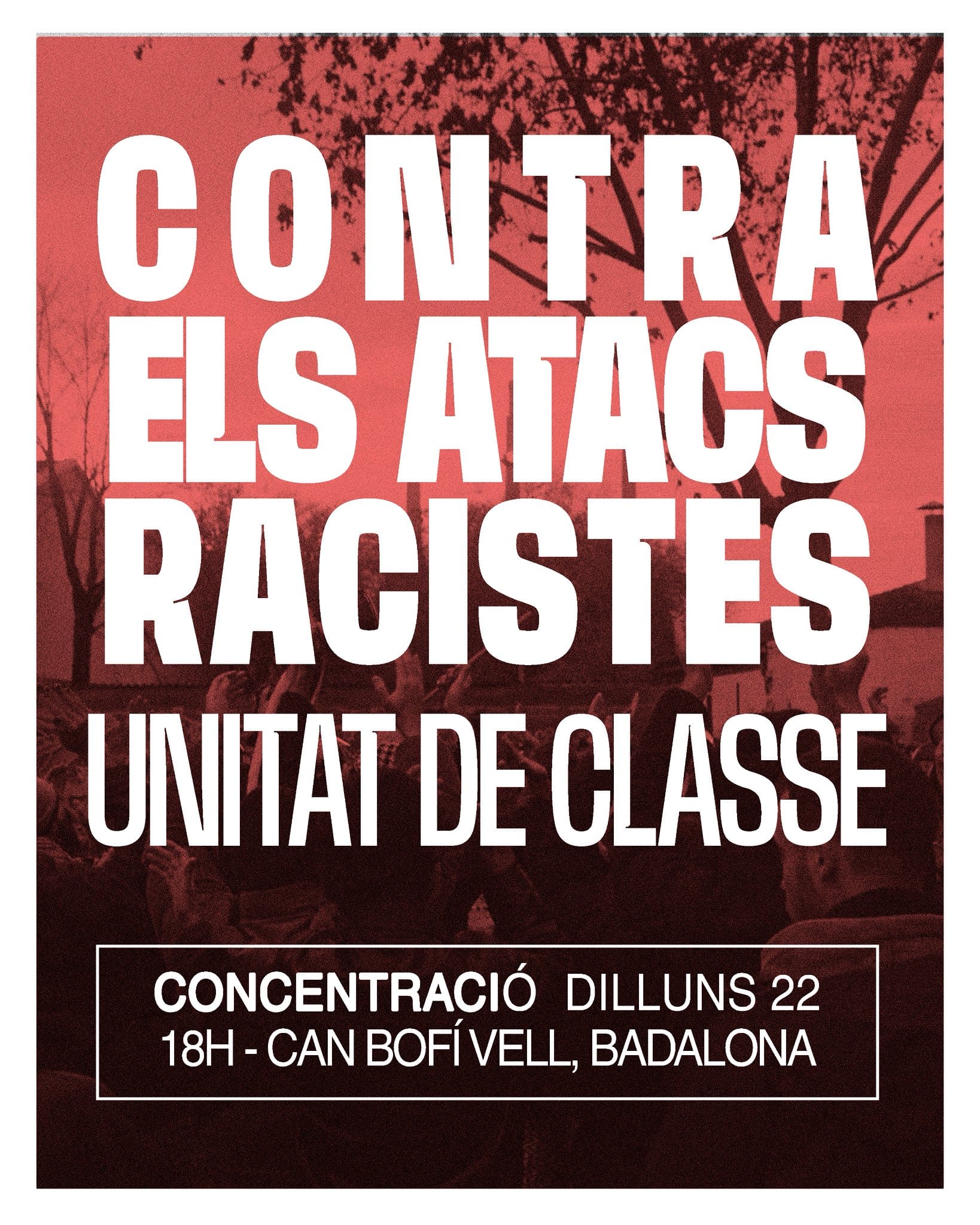 El Sindicat d’Habitatge Socialista de Catalunya ha convocado una concentración urgente hoy, lunes 22 a las 18h, en Can Bofí Vell, Badalona, para denunciar el ataque racista.