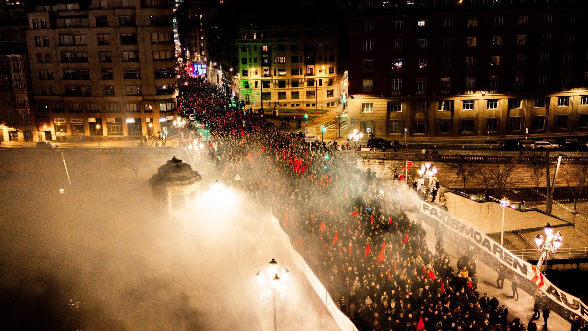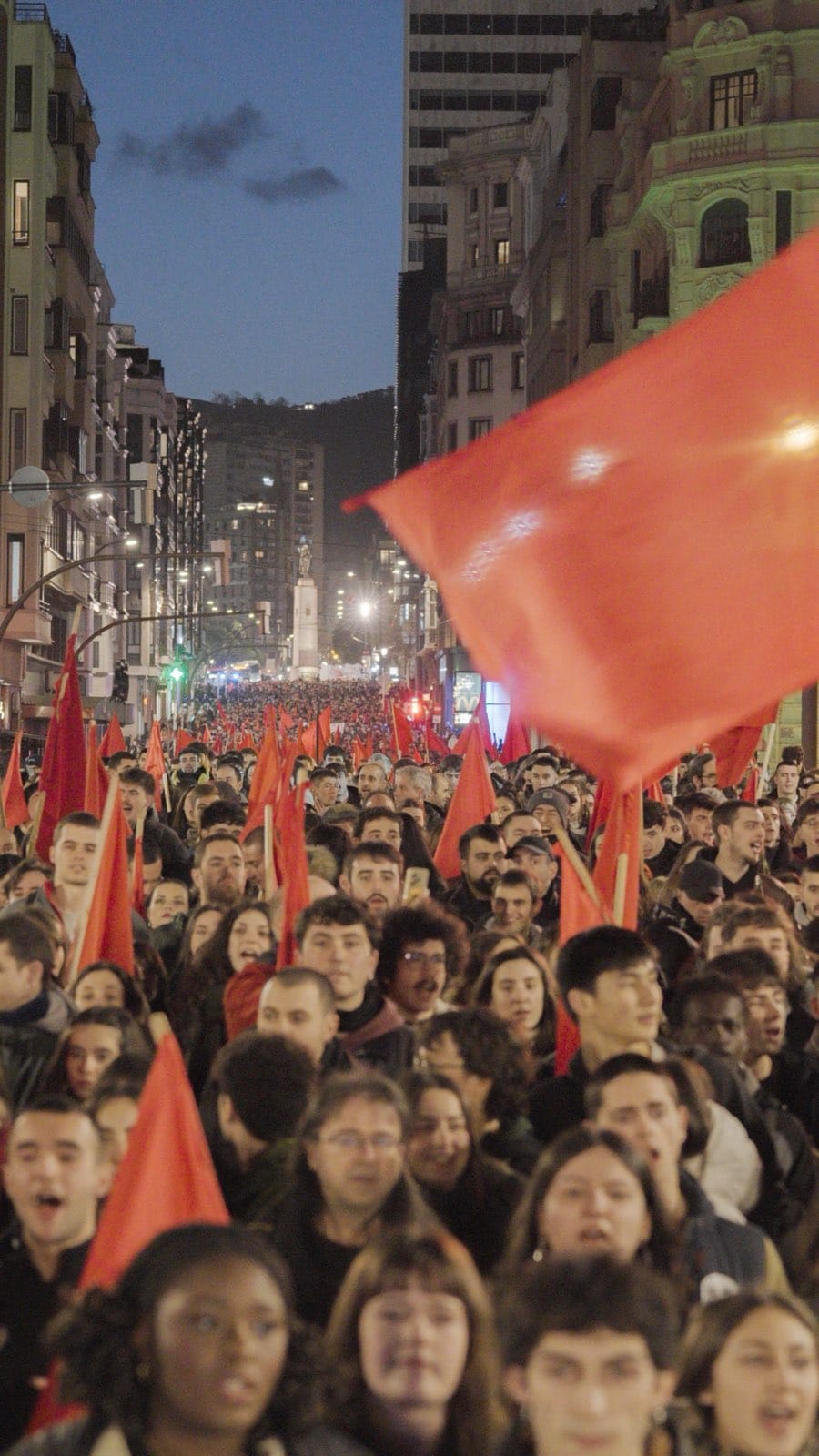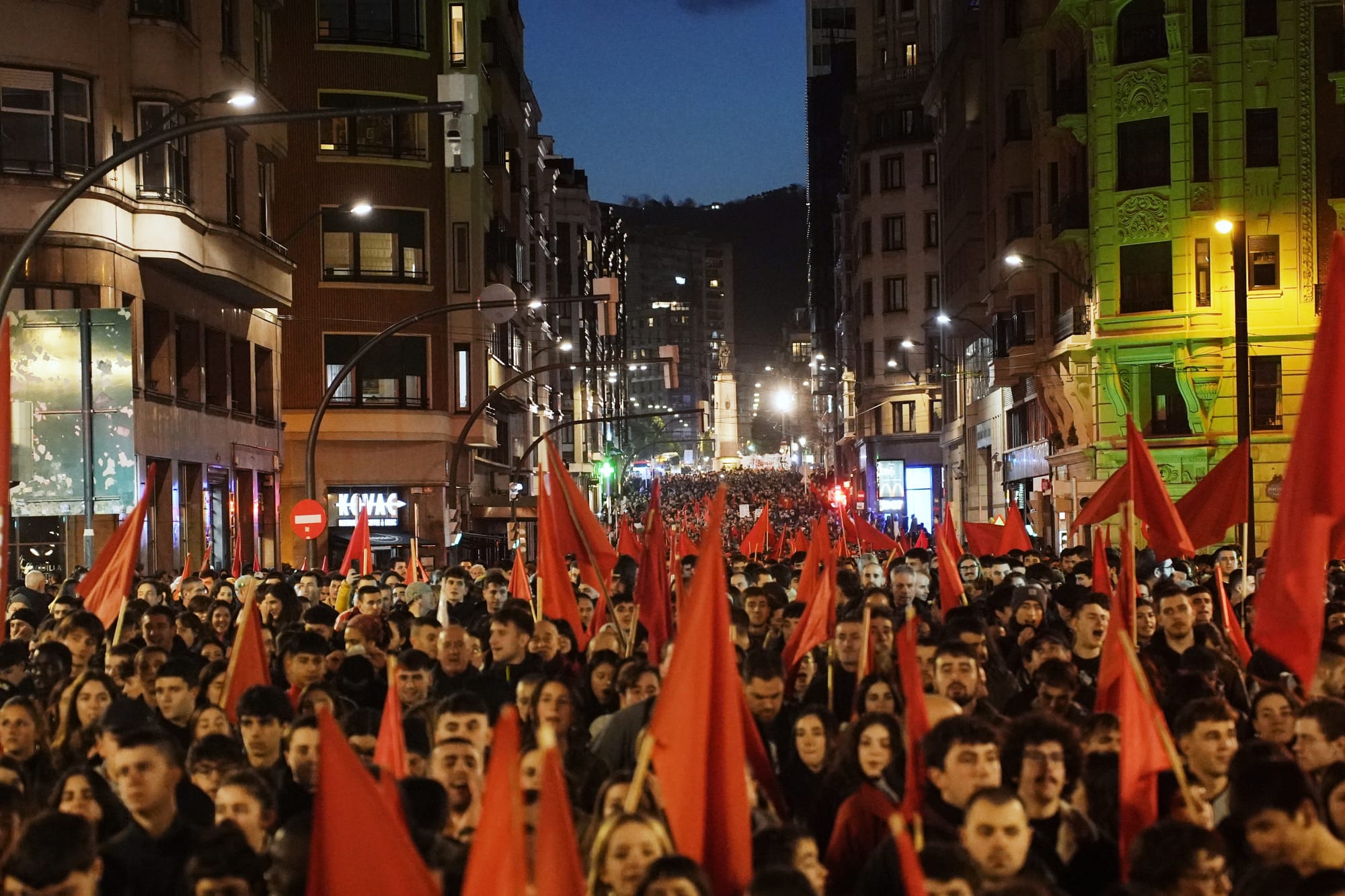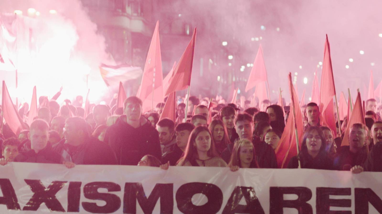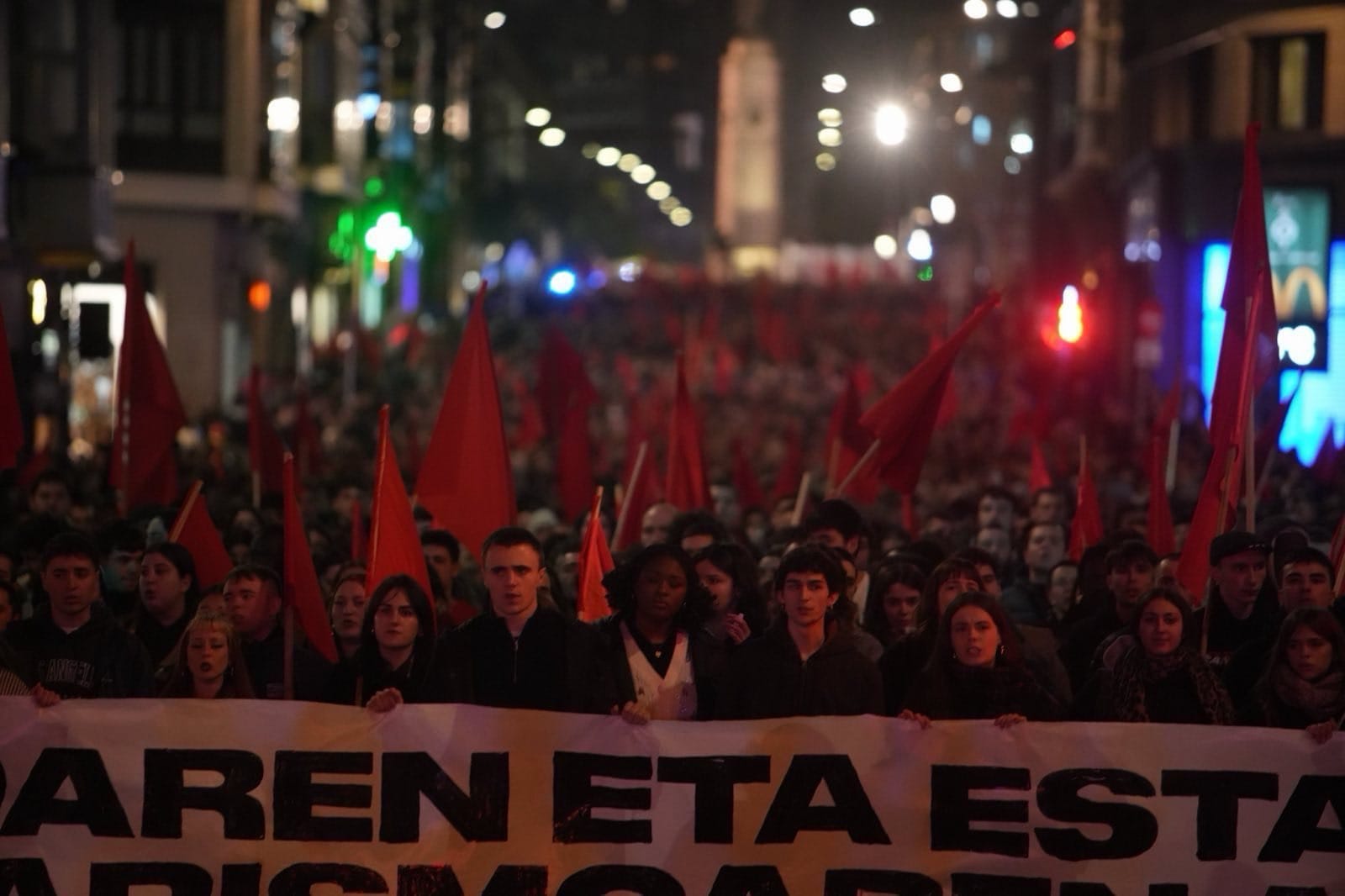 Concluyeron la lectura subrayando el papel de la juventud trabajadora: "Queremos subrayar la importancia de la lucha juvenil. Contra la agenda imperialista, contra el estado policial y militarista y contra los nuevos fascismos, el mejor antídoto es construir un fuerte movimiento de la juventud trabajadora. Al estado autoritario de la oligarquía contraponemos el estado socialista. Porque el Estado Socialista es el modelo de estado llamado a acabar con el imperialismo y a construir una sociedad sin opresiones de ningún tipo. Hacia la revolución internacional, hacia la construcción del estado socialista vasco, ¡seguimos luchando en esta dirección!".
