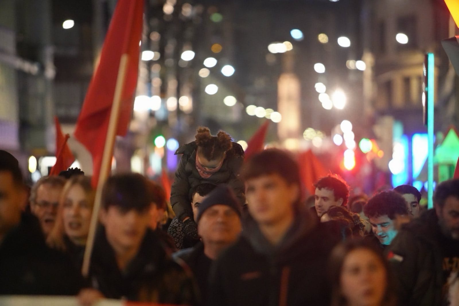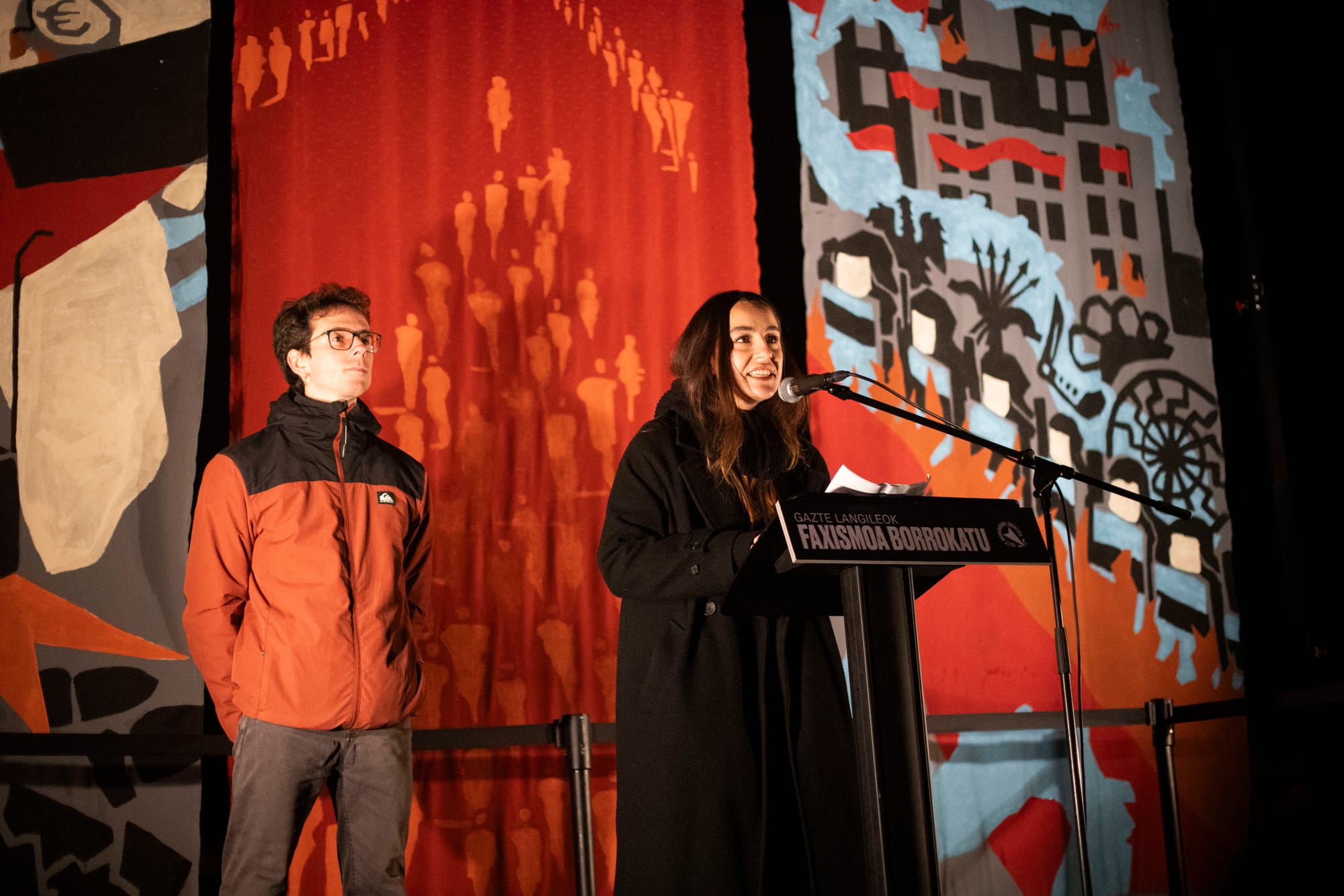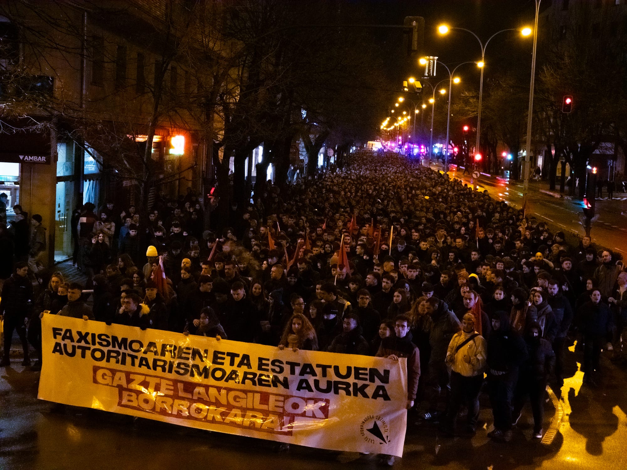 La organización juvenil del Movimiento Socialista presentó en diciembre la convocatoria de movilizaciones para ayer, y desde entonces destacó que su objetivo era "construir un muro de contención ante el fascismo y el giro autoritario de los estados". Un compromiso que reiteró ayer: "No vamos a aceptar la exaltación de la dictadura franquista, no vamos a aceptar ideas supremacistas contra Euskal Herria o contra el euskera, tampoco aceptaremos el racismo contra las personas inmigrantes, ni los discursos machistas que dicen que la mujer debe estar al servicio del hombre".