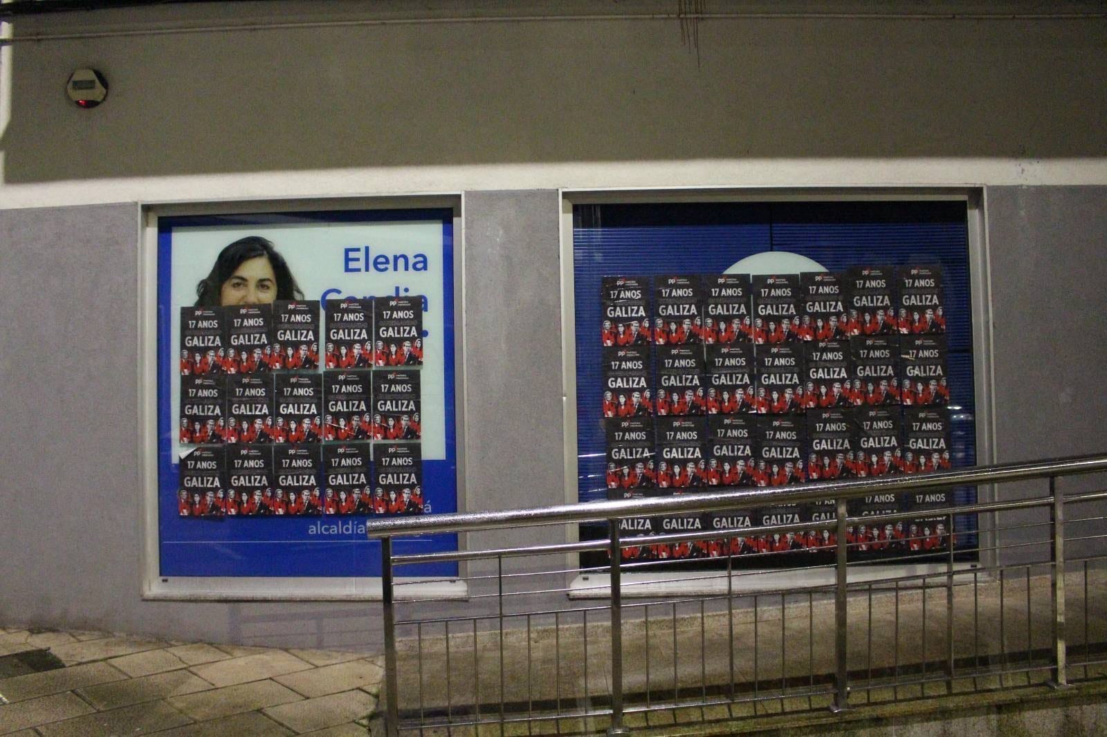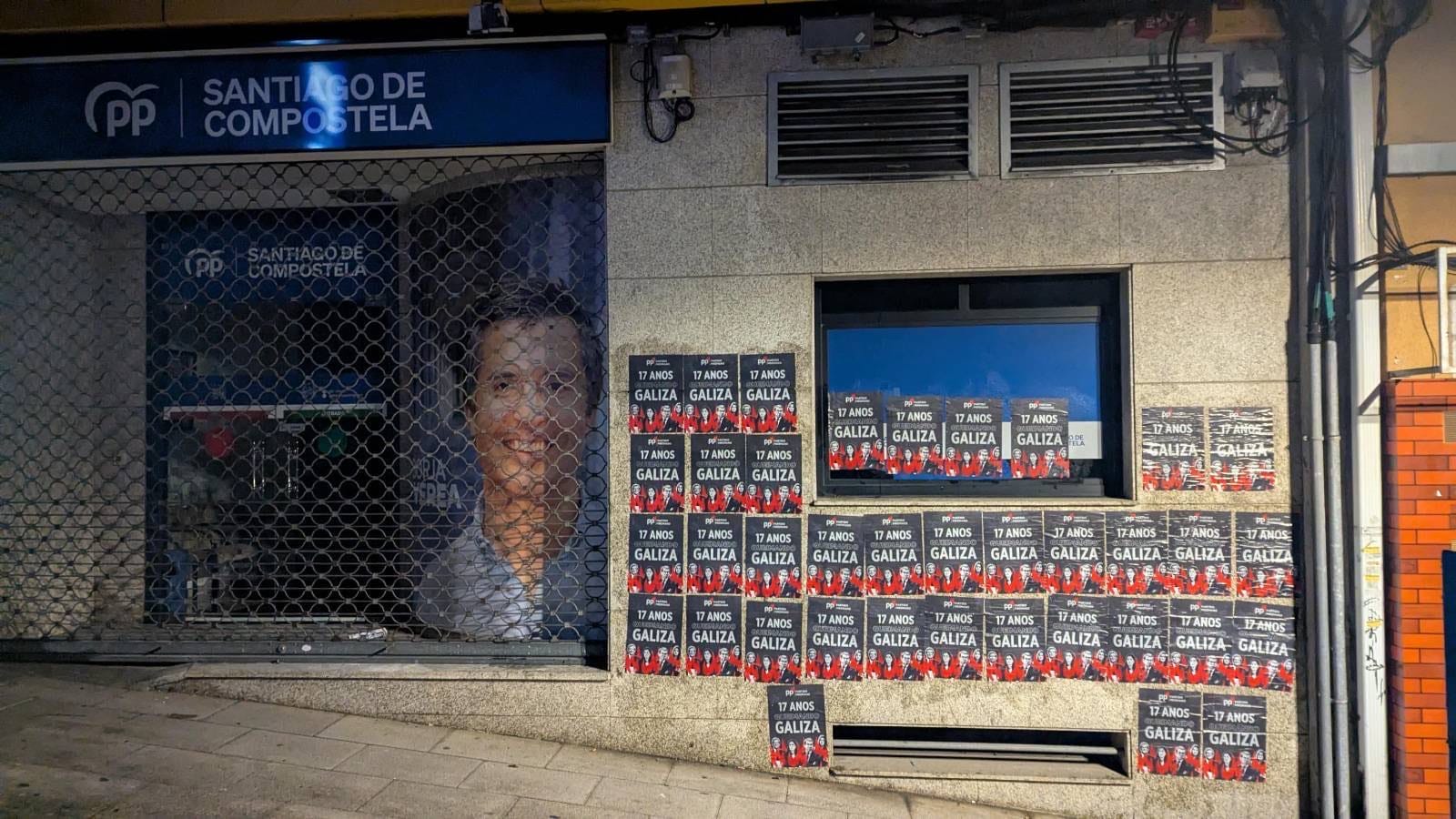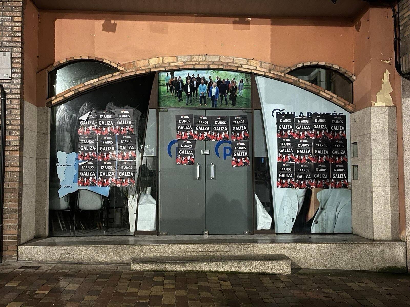 Varias sedes gallegas del PP aparecen empapeladas con el lema “Partido Pirómano”