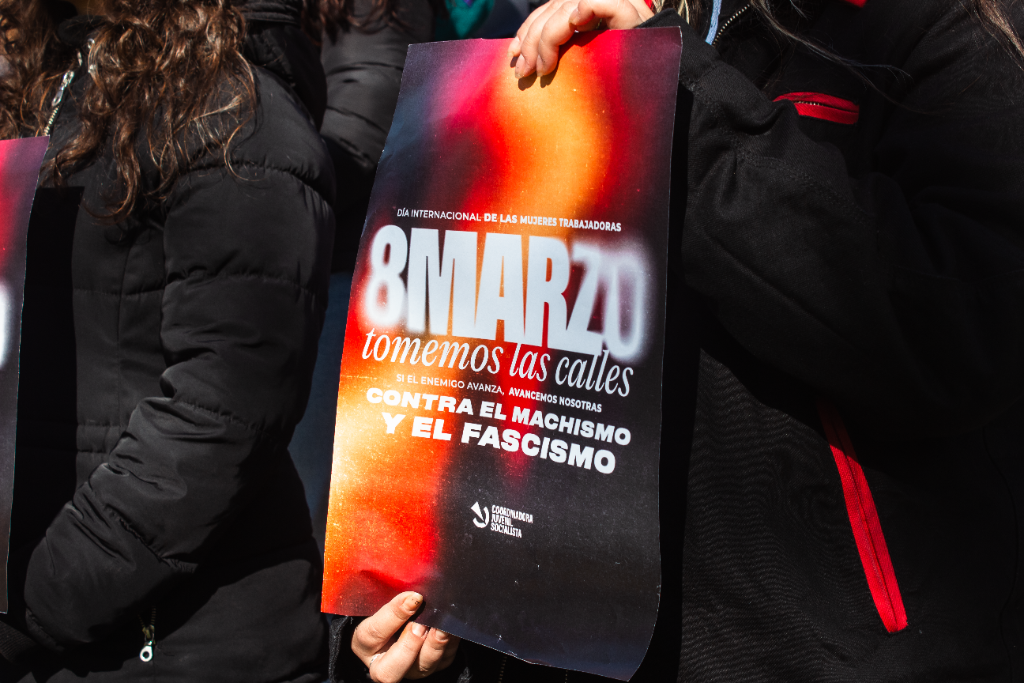 La Coordinadora Juvenil Socialista (CJS) ha anunciado este miércoles una movilización con motivo del 8 de marzo, Día Internacional de las Mujeres Trabajadoras, con una declaración en vídeo con decenas de militantes que señala directamente el fascismo, el Gobierno de coalición y el sistema capitalista en su totalidad. En la convocatoria, la organización señala que "vivimos en un momento de crisis" y que "todo esto cae con especial fuerza encima de los hombros de las mujeres trabajadoras". La proclama señala directamente a las instituciones como responsables de esta situación, recordando, por ejemplo, que "en el llamado Gobierno progresista han pervivido las peores de las misoginias".