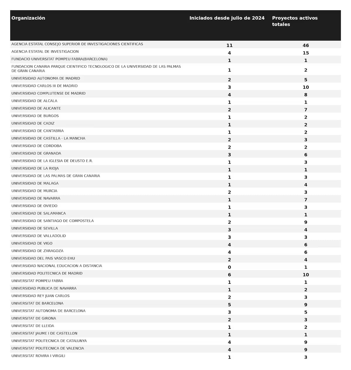El análisis revela que el CSIC encabeza la lista con 11 proyectos iniciados recientemente y 46 activos. Le siguen la Politécnica de Madrid (6 nuevos, 10 activos) y las universidades de Barcelona, Catalunya y València. Entre los casos más graves, la Universidad de Granada participa en un proyecto para diseñar vehículos no tripulados para vigilancia junto a Mellanoz Technologies, empresa integrada en el ecosistema tecnológico israelí. La Universidad del País Vasco colabora con Technion, institución que contribuye al desarrollo militar israelí con tecnología aplicada en operaciones militares. La Fundación CIDAUT de la Universidad de Valladolid trabaja con Hydrolite, filial de uno de los mayores contratistas militares de Israel.