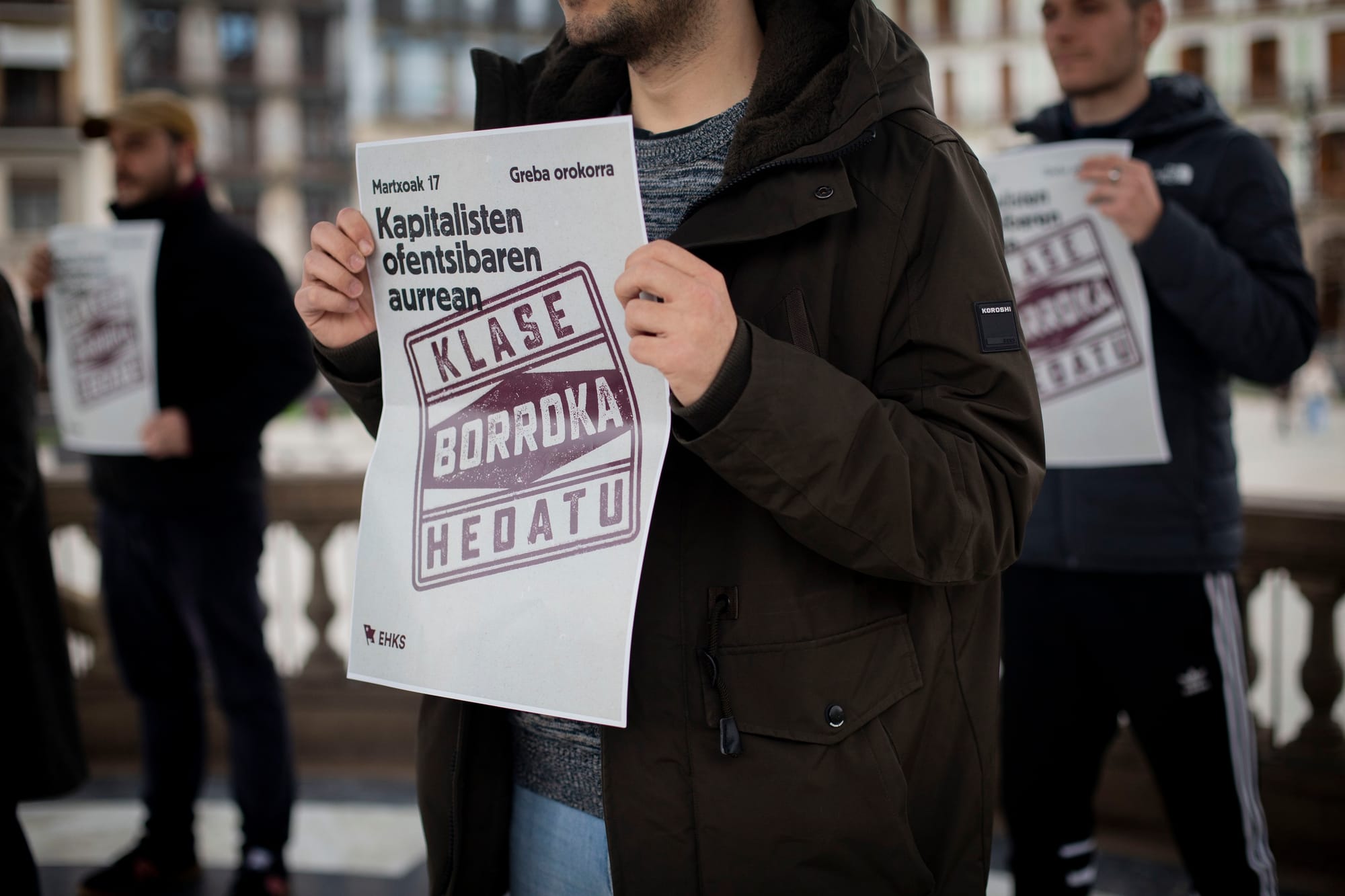 “Estamos plenamente inmersos en una etapa de conflictos laborales, cierres de empresas y despidos, detrás de los cuales se esconden, entre otros, los intereses de los fondos de inversión y de los grandes empresarios. En tiempos de crisis, los capitalistas aumentan sus beneficios empeorando las condiciones de vida y de trabajo de los trabajadores”, ha señalado el portavoz de EHKS, Ander Goiatxe. En consecuencia, la organización llamará el 17 de marzo a luchar contra “la ofensiva capitalista”: “Pondremos en el punto de mira las razones de ser de la oligarquía y del capitalismo. La socialización de toda esa riqueza que está en manos privadas de la burguesía es condición para el bienestar de todos”.