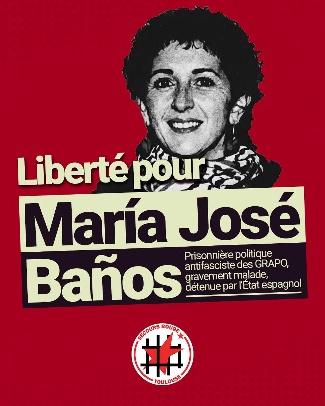 Baños Andújar ha denunciado reiteradamente las condiciones carcelarias de excepción que pesan sobre ella en el Centro Penitenciario de Murcia II, así como el grave deterioro de su salud provocado por la falta de atención sanitaria adecuada, en un contexto de endurecimiento del régimen penitenciario hacia los presos que las autoridades consideran "de especial peligrosidad". El SRI hace un llamamiento "a la solidaridad activa, a la denuncia pública y a la movilización" para presionar al Gobierno y lograr el traslado inmediato de María José al hospital, con garantías sanitarias. "Ella ha luchado de forma consecuente por nuestros derechos, ¡ahora demos la cara por ella!", reivindican los presos y los colectivos de apoyo.