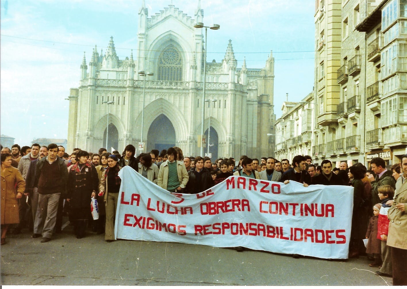 Gasteiz (Araba) amaneció el 3 de marzo de 1976 paralizada por la tercera jornada consecutiva de huelga general dentro de tres meses de intensa conflictividad laboral en la ciudad. Se levantaron barricadas en las calles y hubo un seguimiento masivo que bloqueaba la ciudad desde las primeras horas. Hacia las once de la mañana, cargas policiales con fuego real en la Avenida del Generalísimo dejan ya varios heridos de bala, entre ellos una mujer en su casa; la ciudad se colapsa por completo para el mediodía. Los trabajadores, organizados en asambleas independientes, resisten la presión de la patronal y las autoridades franquistas, que ven en esta movilización una amenaza directa al régimen.