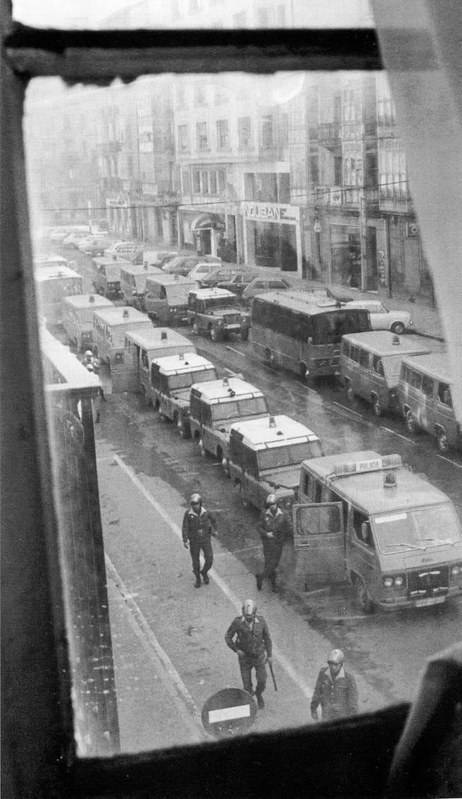 De hecho, la huelga no se doblega, ni en Gasteiz, ni en Euskal Herria, ni en el Estado español, ni internacionalmente: las protestas solidarias propagan como un fuego. La clase obrera vuelve a enfrentar la feroz represión con valentía. "Si salís hoy, dispararemos a matar", amenazan los agentes a la puerta de las fábricas. Y los trabajadores no obedecen, salen a la lucha y vuelven a pagar el un alto precio, con el asesinato de dos obreros de la construcción por las balas de la policía: Juan Gabriel Rodrigo Knafo de 19 años en Tarragona (Catalunya) el 6 de marzo y Vicente Antón Ferrero en Basauri (Bizkaia) el 8 de marzo.
