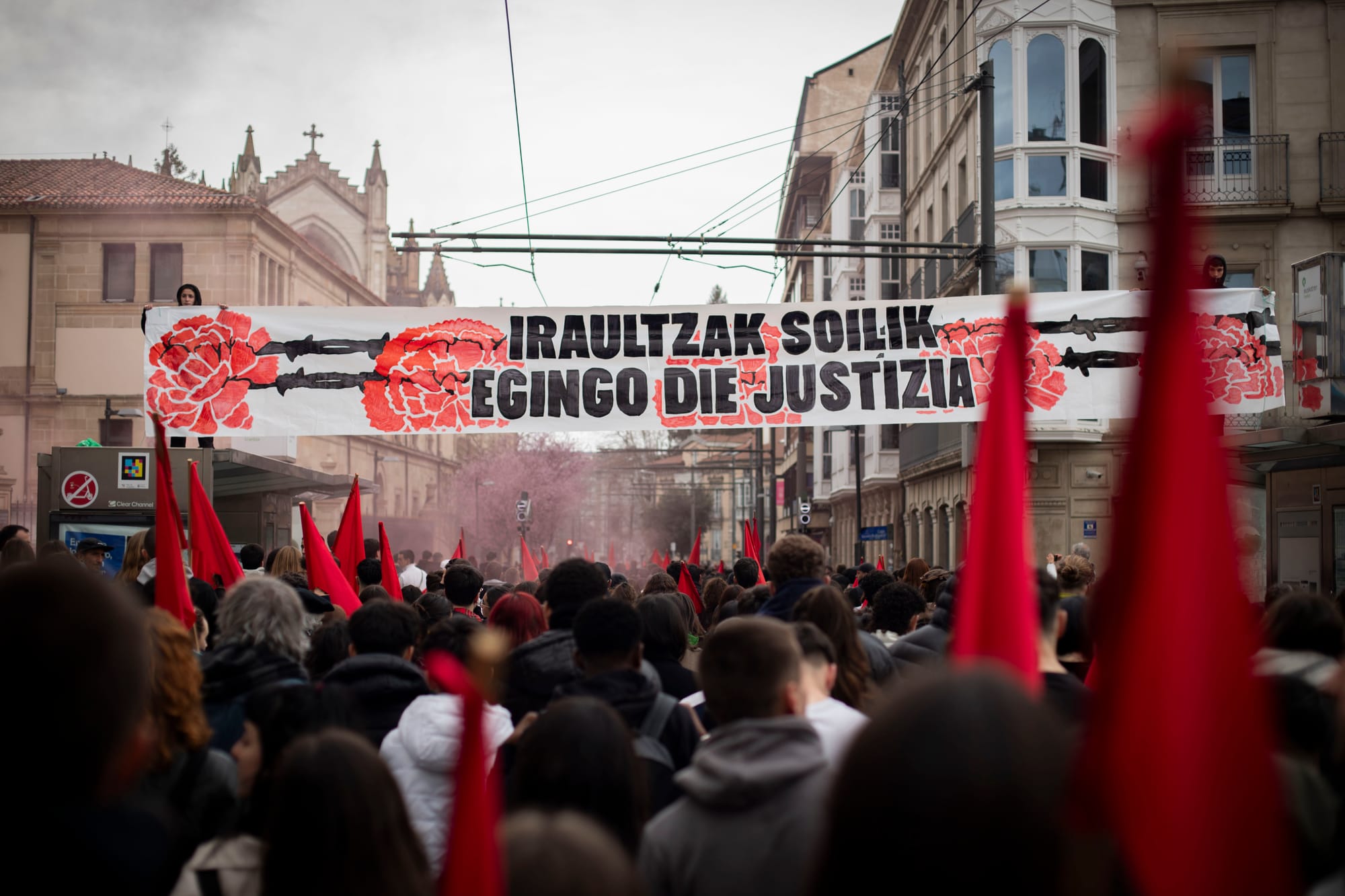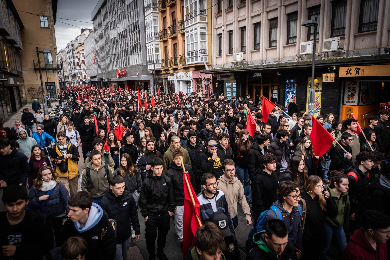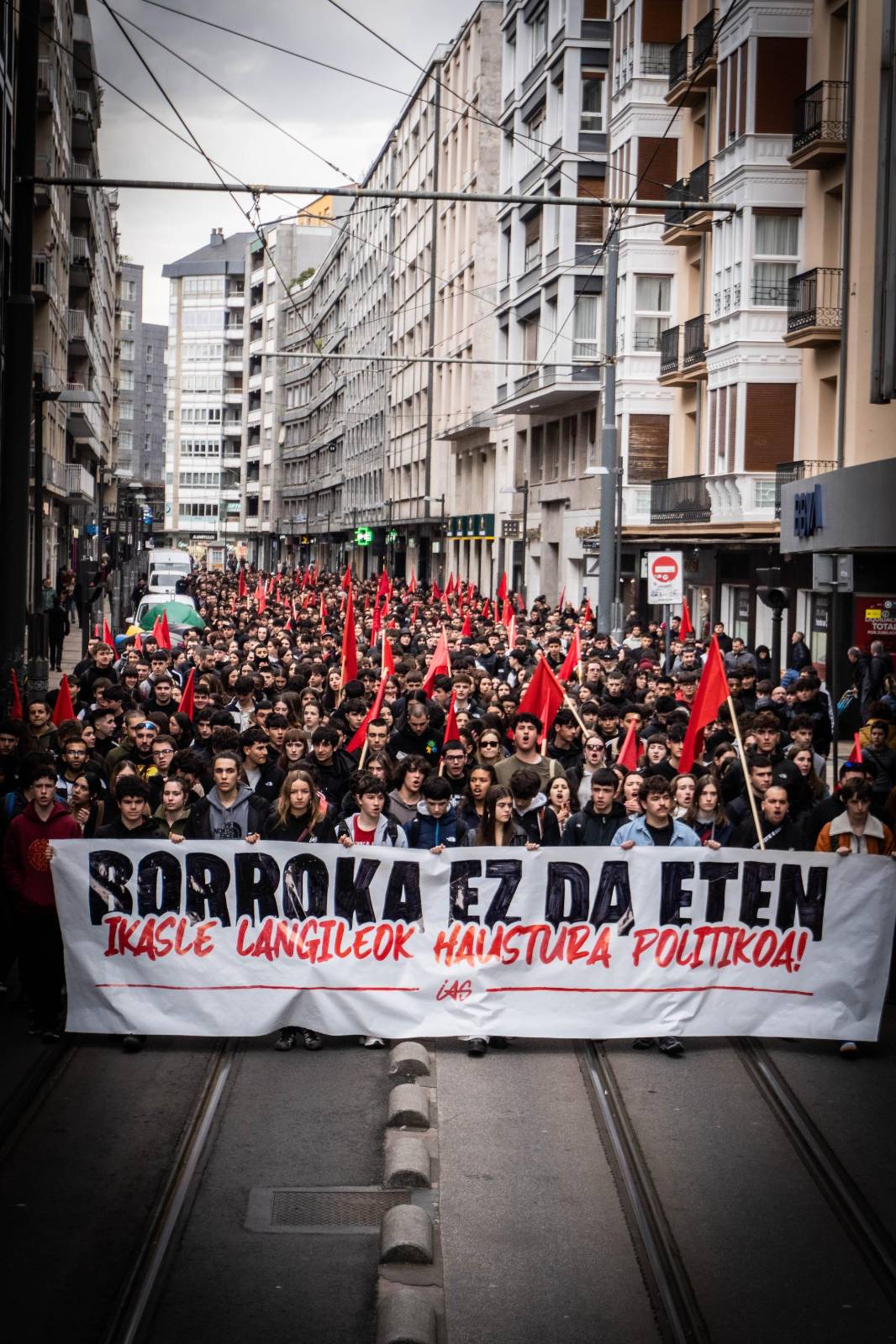 Tras la huelga y la manifestación estudiantil de la mañana, el Movimiento Socialista tiene otra cita para la tarde: ha organizado un Bloque Socialista que saldrá a las 17:30 desde Iparralde. Los sindicatos ELA, LAB, Steilas y ESK, así como la asociación Martxoak 3, han convocado para las 18:30 en la Catedral Nueva.
