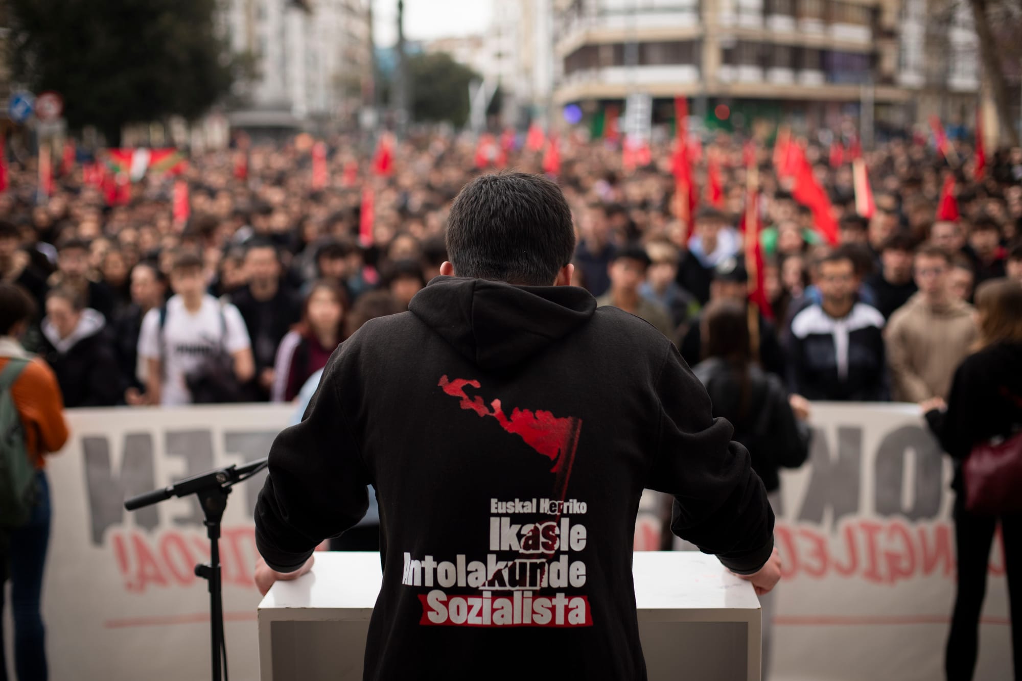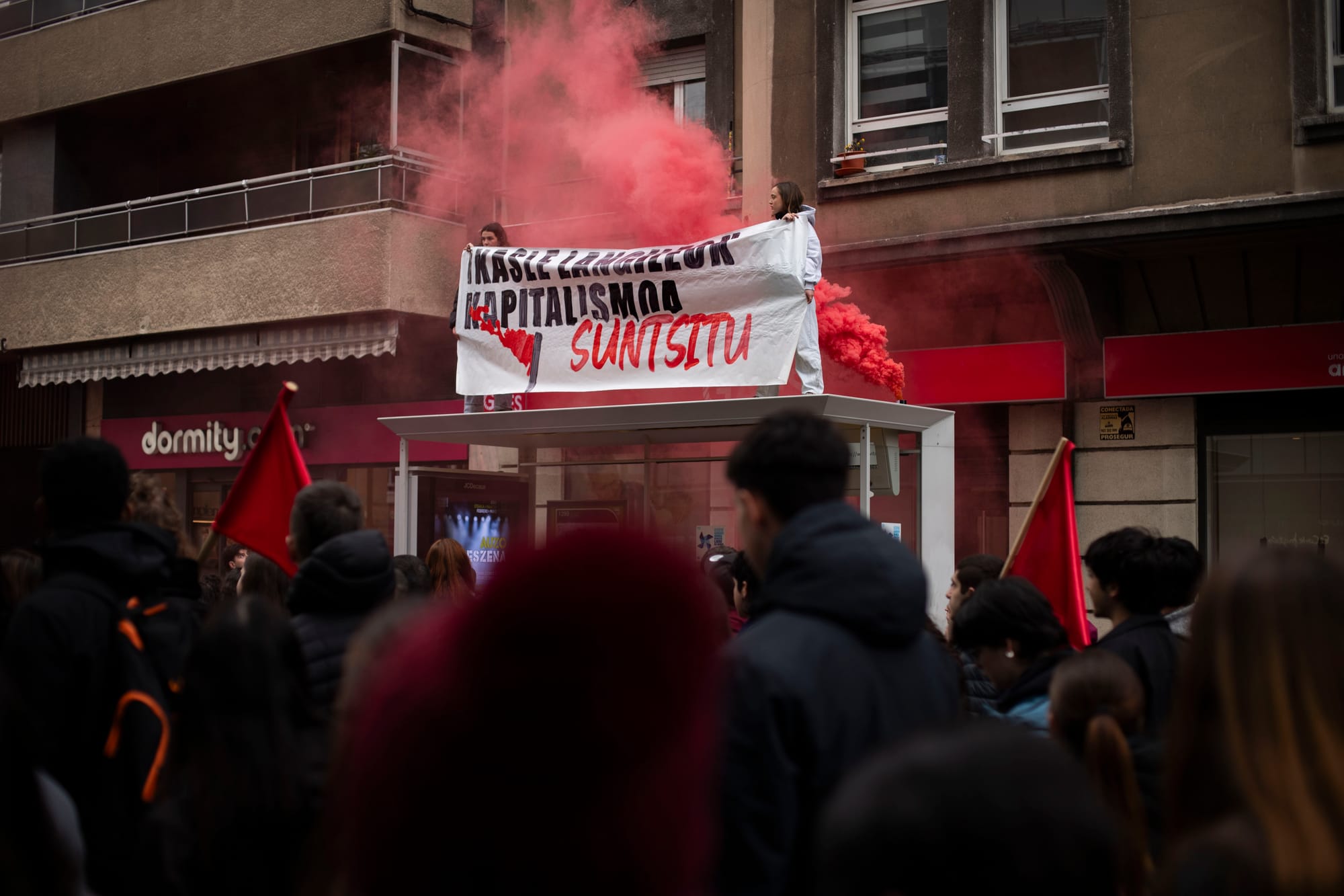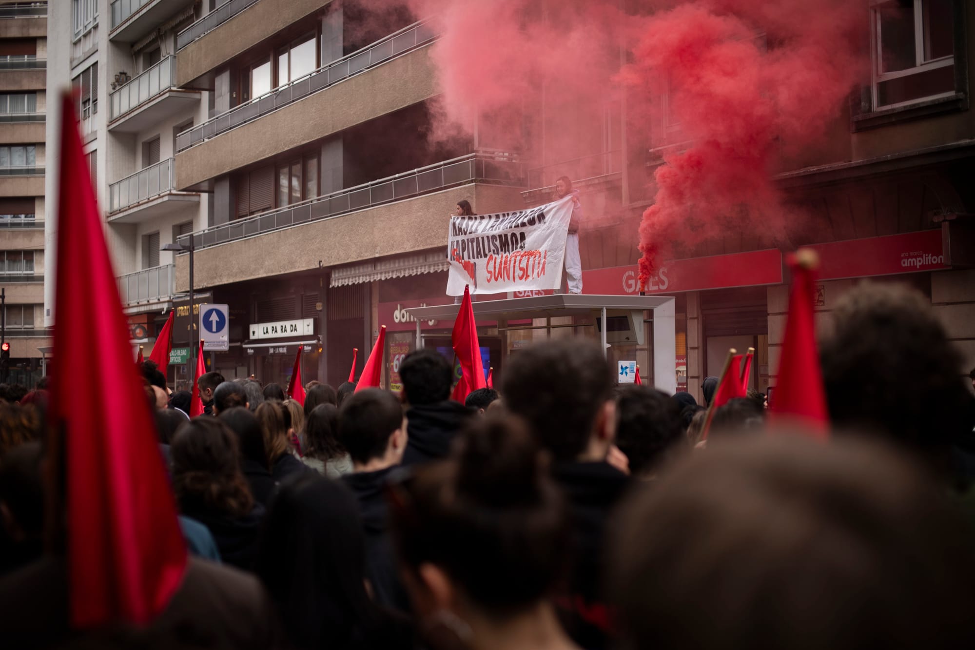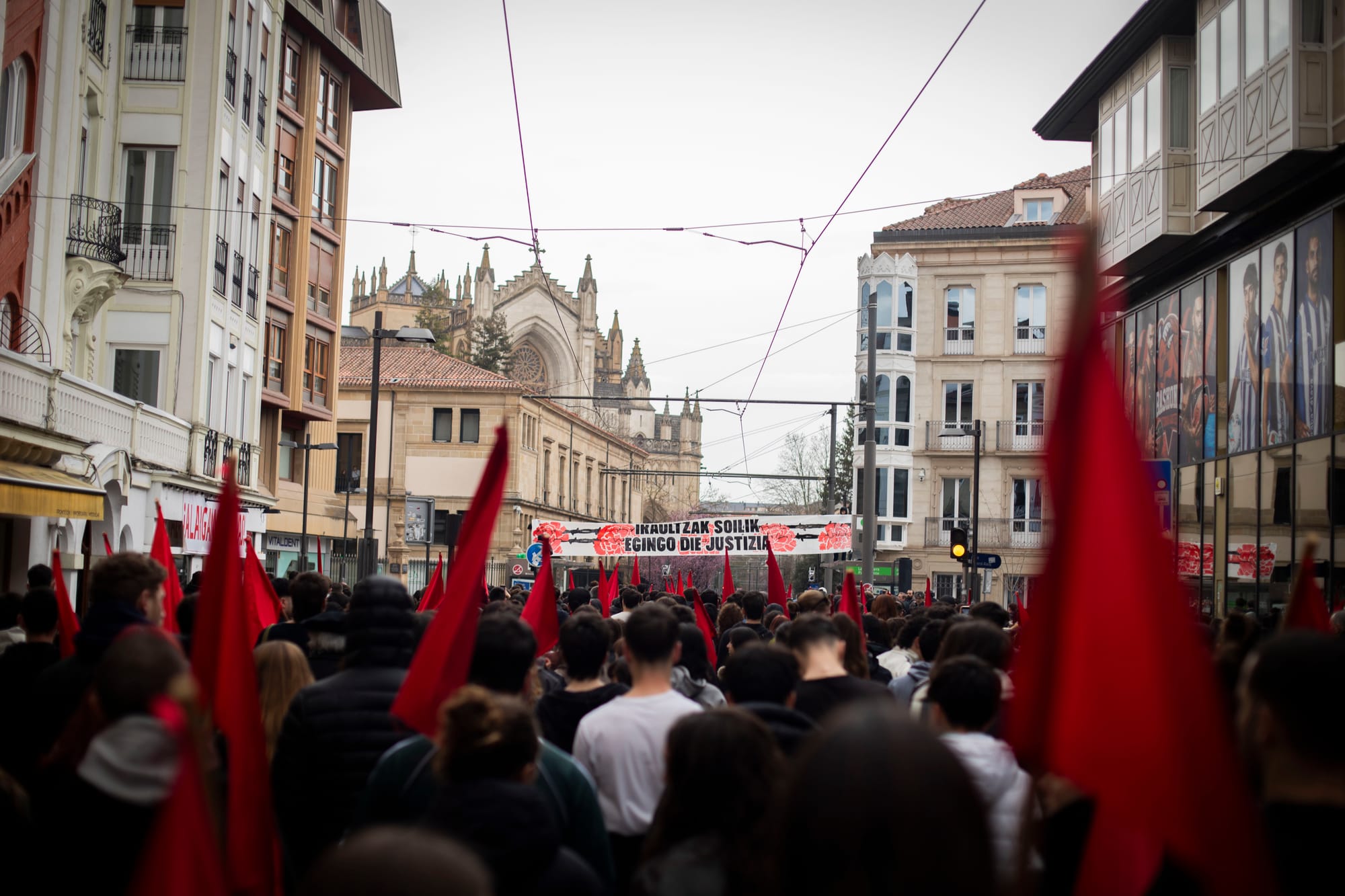 Tras la huelga y la manifestación estudiantil de la mañana, el Movimiento Socialista tiene otra cita para la tarde: ha organizado un Bloque Socialista que saldrá a las 17:30 desde Iparralde. Los sindicatos ELA, LAB, Steilas y ESK, así como la asociación Martxoak 3, han convocado para las 18:30 en la Catedral Nueva.