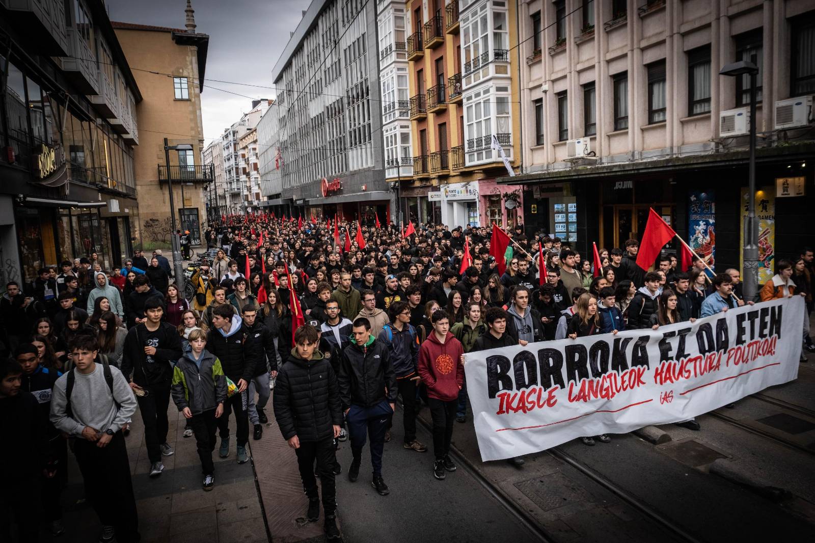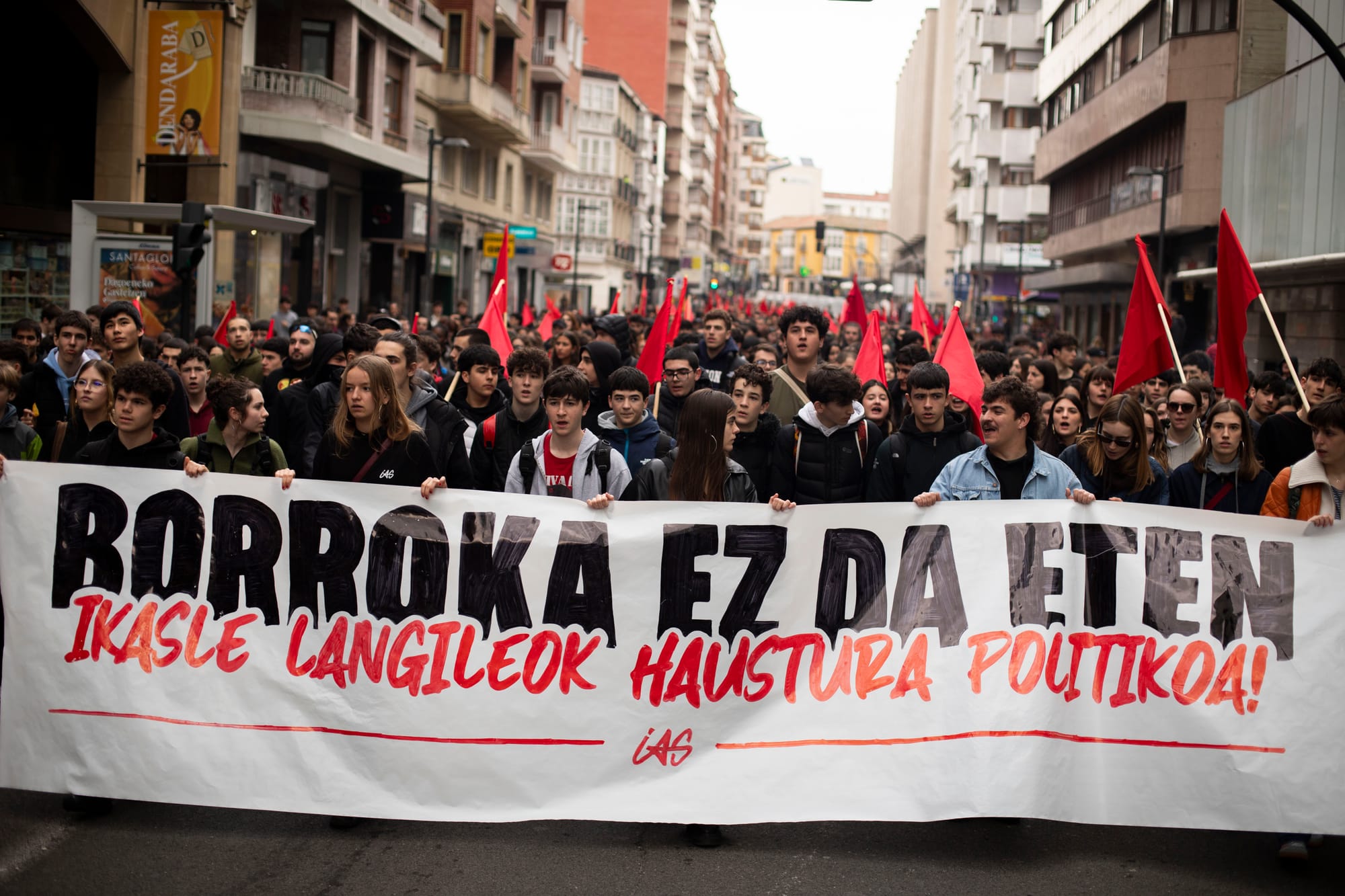 Jendetza batu da Gasteizko @IASozialista|k eta @GKS_Gasteiz|ek deitutako manifestaziora, 'Borroka ez da eten. Ikasle langileok haustura politikoa' lelopean.