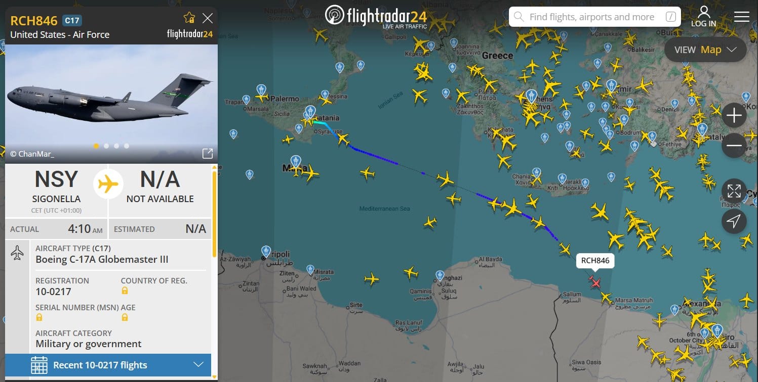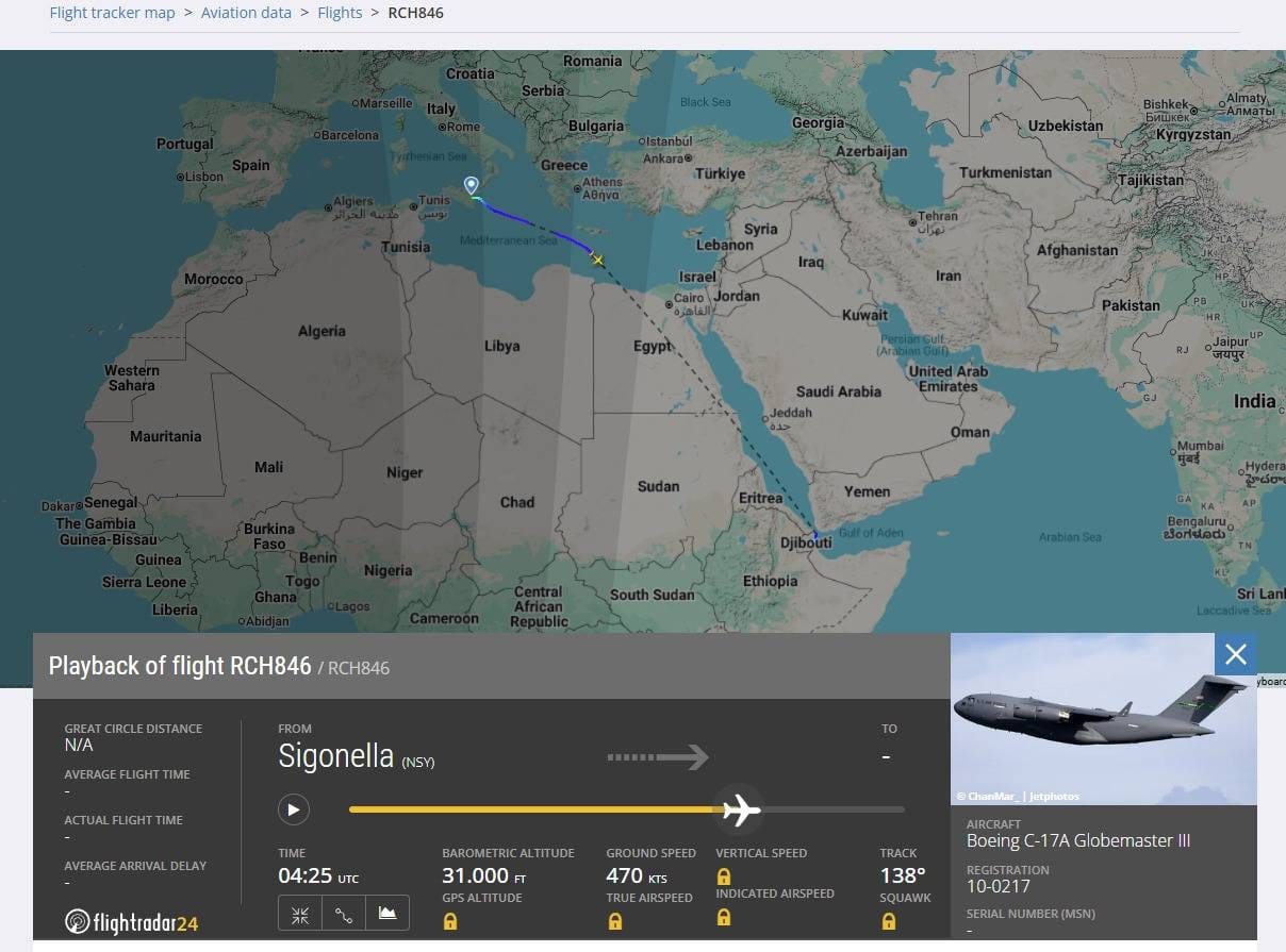La polémica sobre el uso de las bases militares españolas en la guerra de Estados Unidos e Israel contra Irán ha sumado un nuevo episodio esta madrugada. El avión de transporte militar Boeing C-17A Globemaster III, con matrícula 10-0217 y distintivo RCH846, que el miércoles despegó de la base naval de Rota (Cádiz) con destino a Sigonella (Sicilia), ha continuado su ruta hacia el este, un trayecto que ha sido registrado parcialmente en la web de seguimiento aéreo Flightradar24, hasta que ha apagado su transpondedor sobre el espacio aéreo de Egipto, con rumbo a Yibuti, según han documentado usuarios con acceso a la versión de pago de la página de rastreo, siguiendo la trayectoria posterior del vuelo.