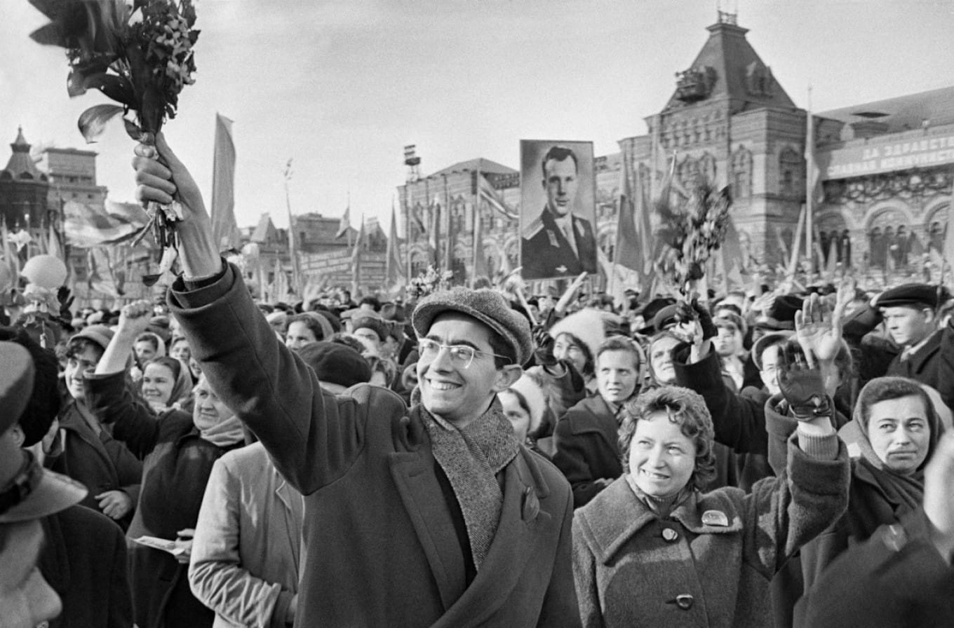 Aquella mañana de abril, cuando descendió de los cielos, Gagarin fue recibido entre sonrisas y flores. El PCUS organizó una larga caravana de vehículos en la que desfiló escoltado por los funcionarios de mayor rango del Kremlin, donde le aguardaba una celebración. Inmediatamente le fue otorgado el título de Héroe de la Unión Soviética. No se veían semejantes celebraciones desde el Día de la Victoria.