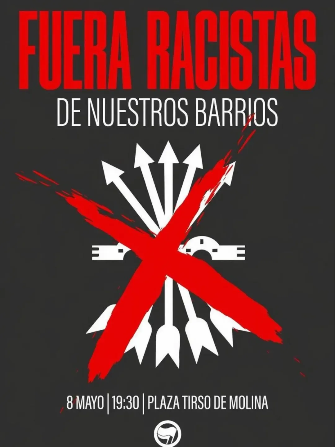 Sierra Antifascista y Madrid Antifascista han convocado una concentración de rechazo para el próximo 8 de mayo en la plaza de Tirso de Molina. La movilización busca responder a la manifestación convocada por la organización fascista Falange, que pretende finalizar su recorrido en este punto neurálgico del barrio de Lavapiés para exigir la "deportación inmediata" de las personas migrantes.