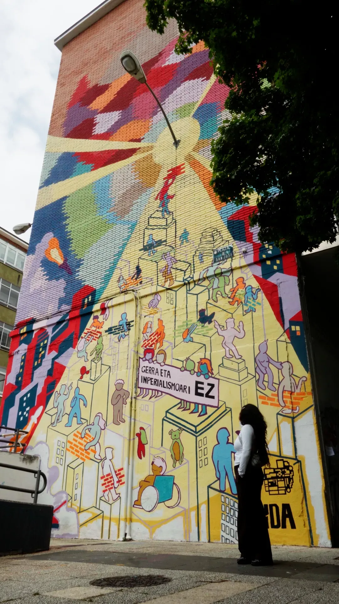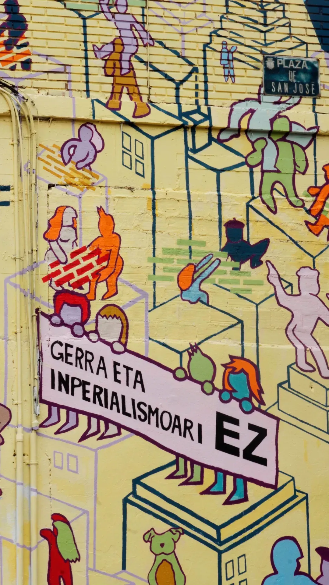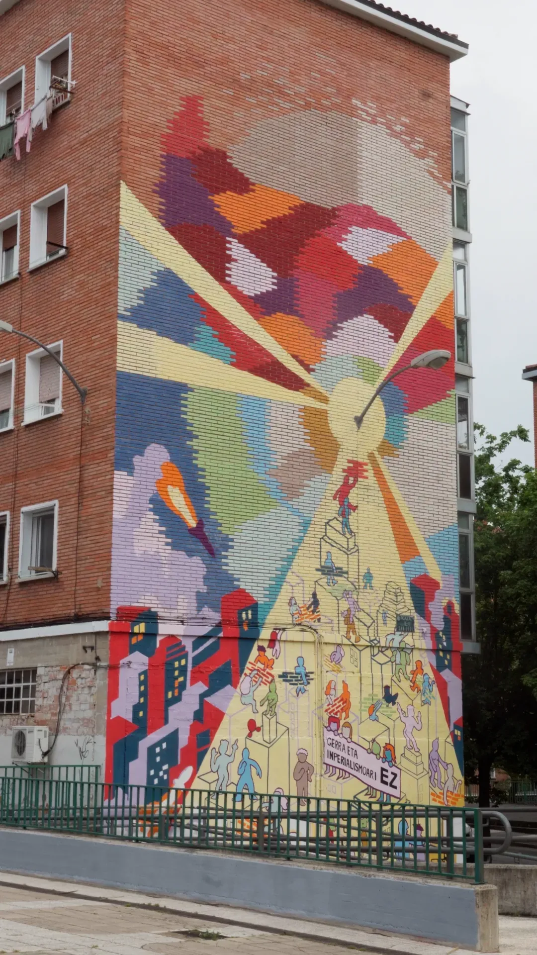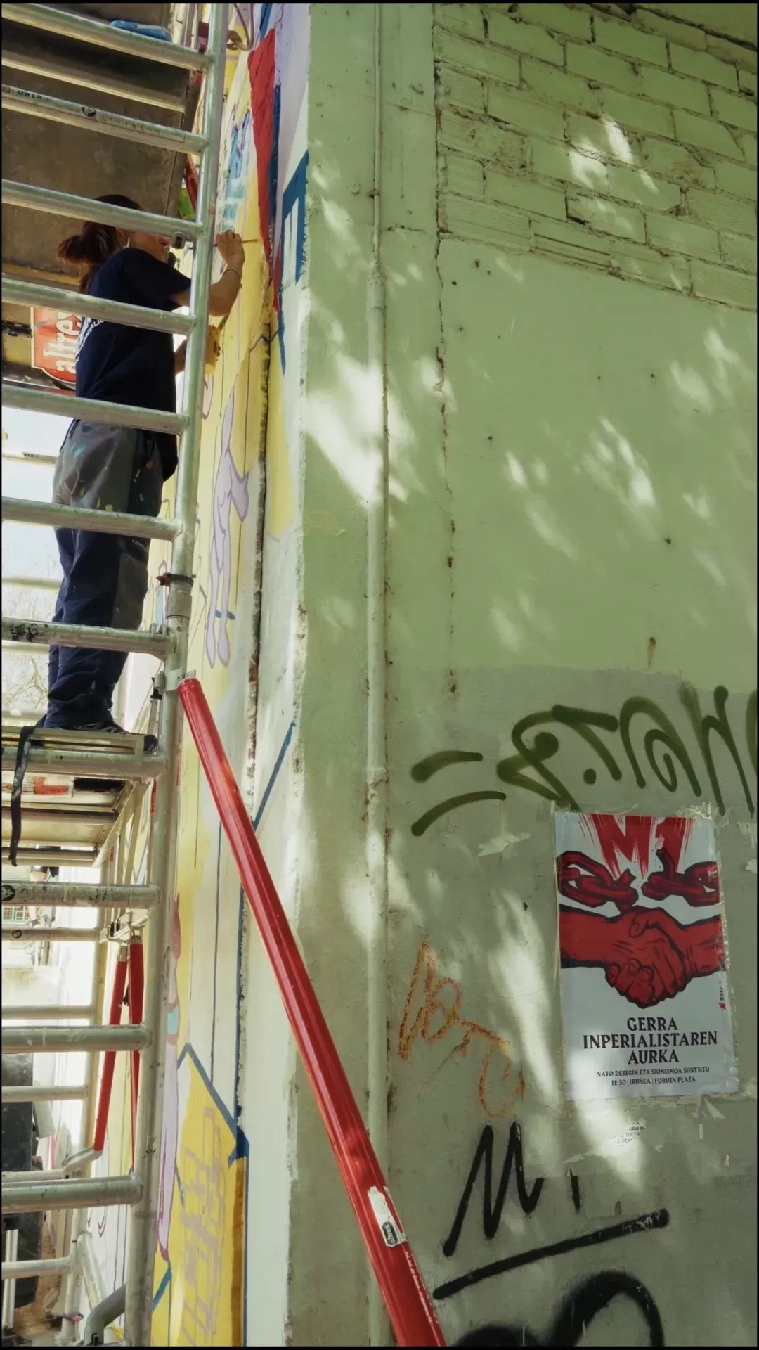 Ekida pinta un mural contra la guerra imperialista en Gasteiz, junto con la Asociación de Vecinos de Arana